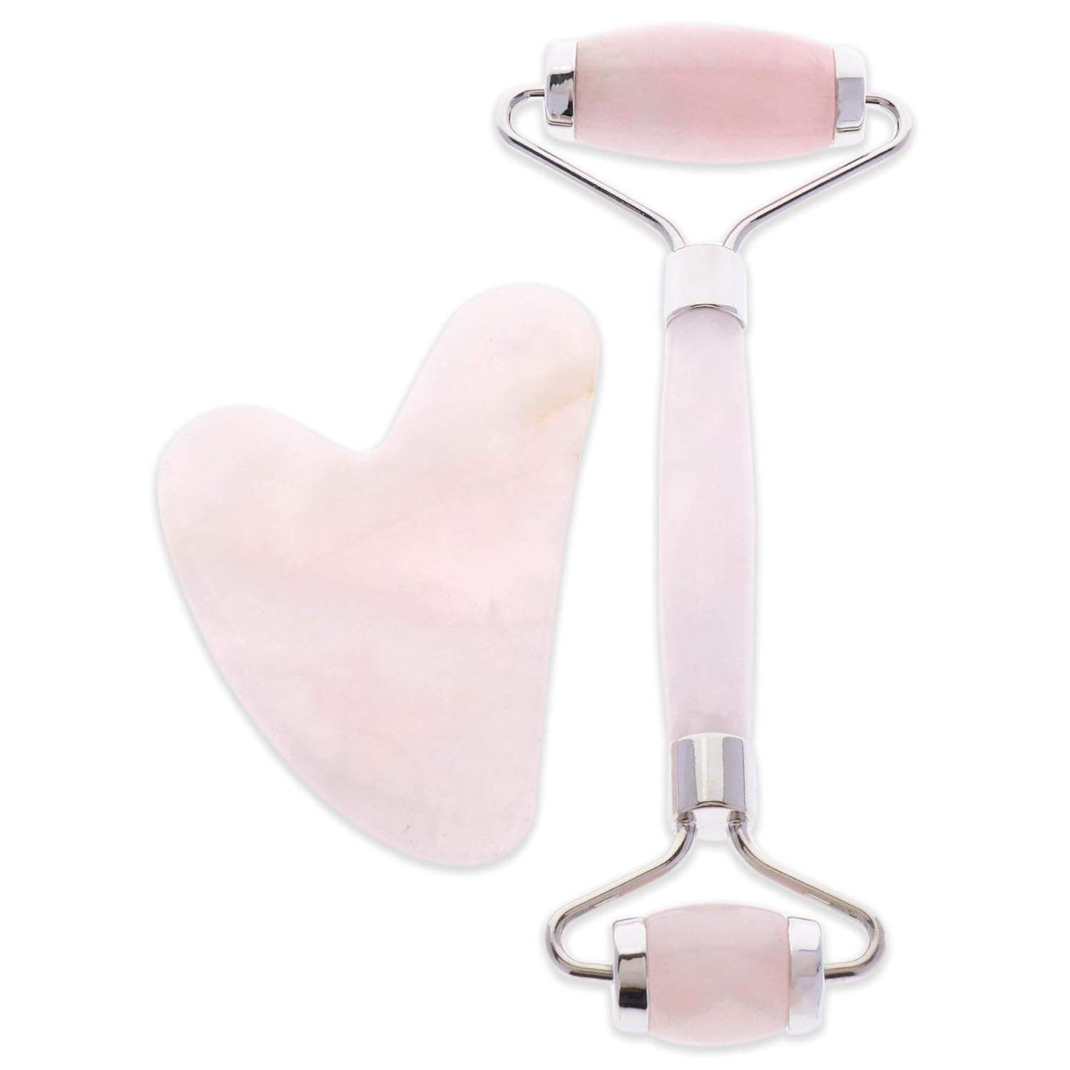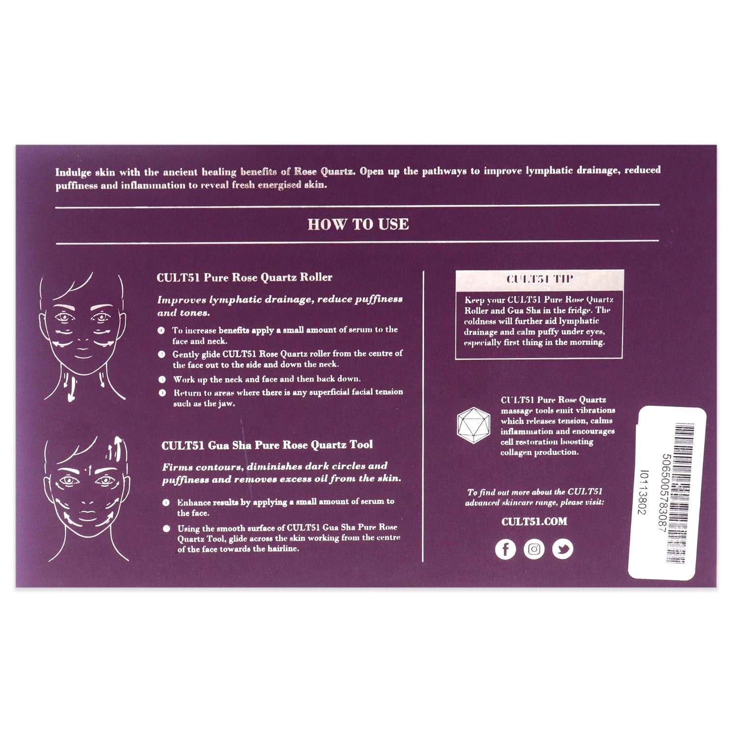 Anti-Ageing Facial Massage Tools by Cult51 for Unisex - 2 Pc Pure Rose Quartz Roller, Gua Sha Tool