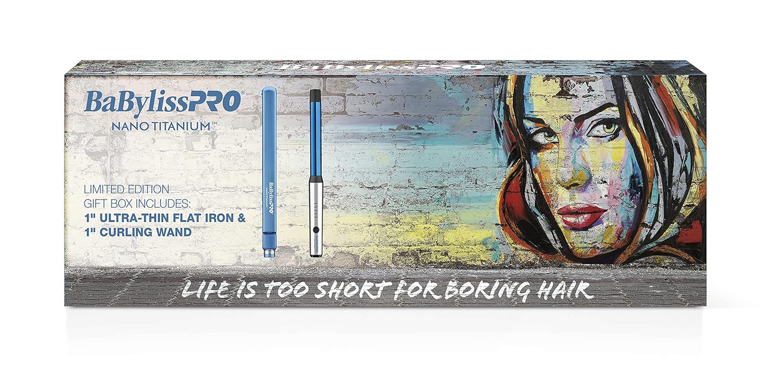 The BaBylissPRO Nano Titanium Limited Edition Flat Iron & Curling Wand set offers a versatile duo for creating a multitude of stunning hairstyles. Both tools in this limited-edition set feature advanced Nano Titanium technology, ensuring even heat distribution for gentle and effective styling.