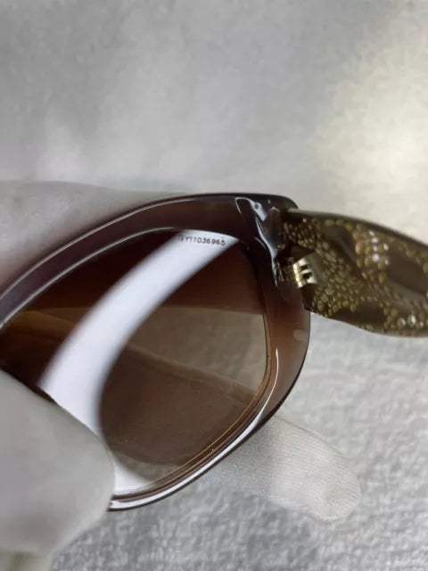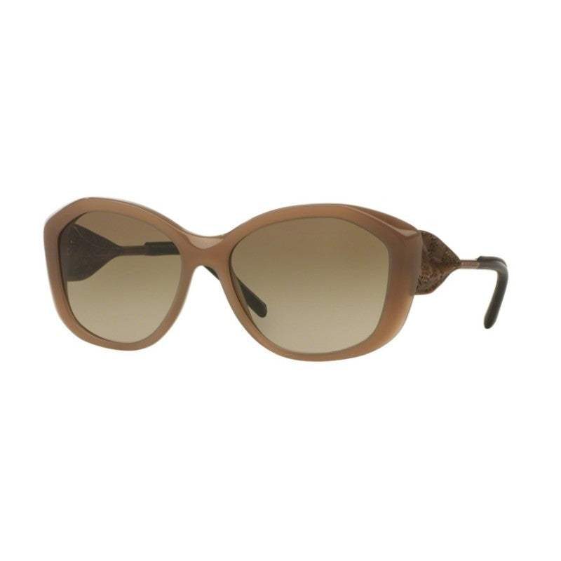Burberry BE 4208-Q 3572-13 is a full rim frame for women which is made from plastic material. Features of sunglasses are beige color fame with brown gradient lens of a butterfly shape. The logo of Burberry is displayed on the temple.