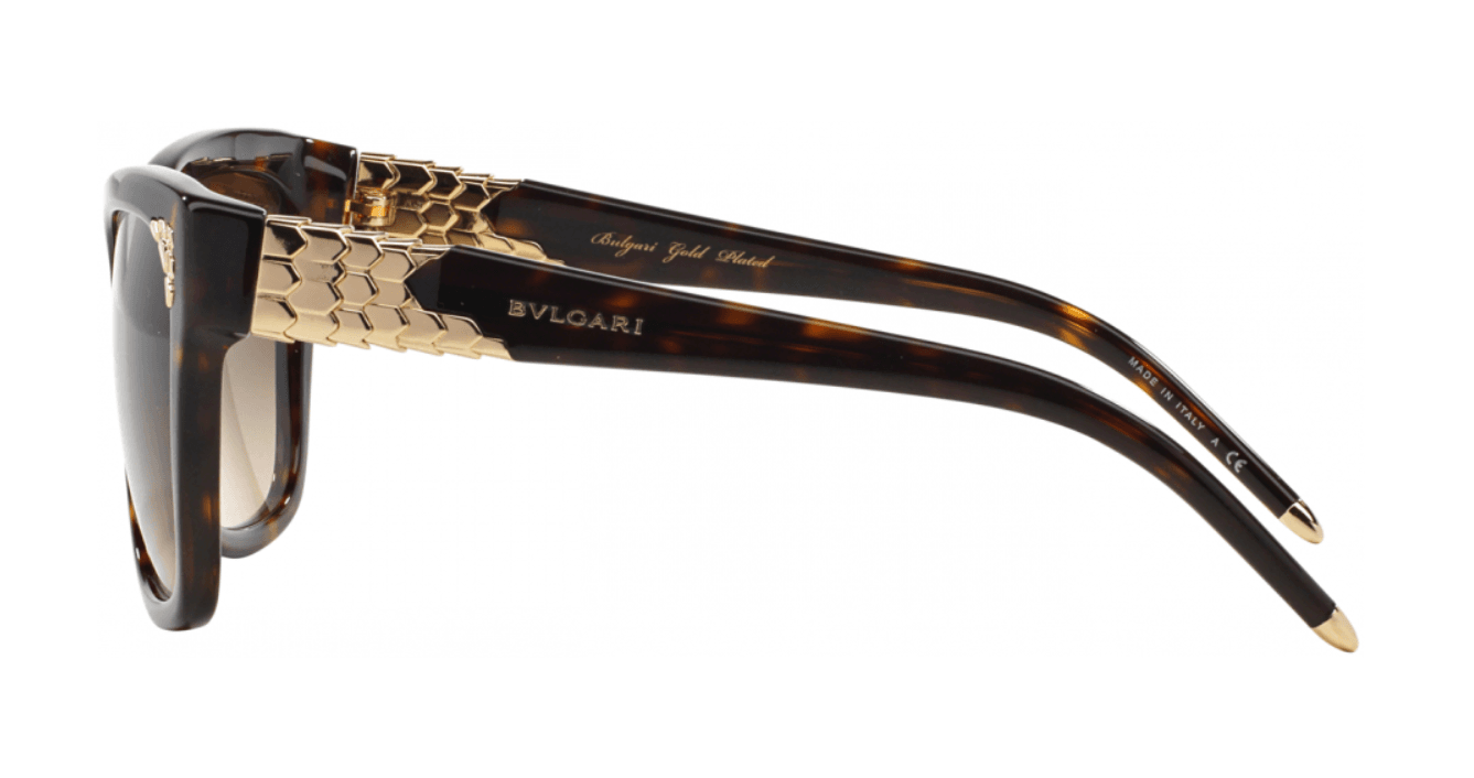 Bvlgari BV8134K 504-13 is a full rim frame for women which is made of acetate material. Features of sunglasses are dark havana color frame with brown gradient lens in sqaure shape. The logo of Bvlgari is displayed on the temple.