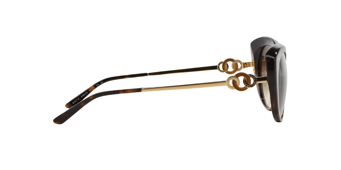 Bvlgari BV8141K 5193-13 is a full rim frame for women which is made of acetate material. Features of sunglasses are dark havana color frame with brown gradient lens in cateye shape. The logo of Bvlgari is displayed on the temple.