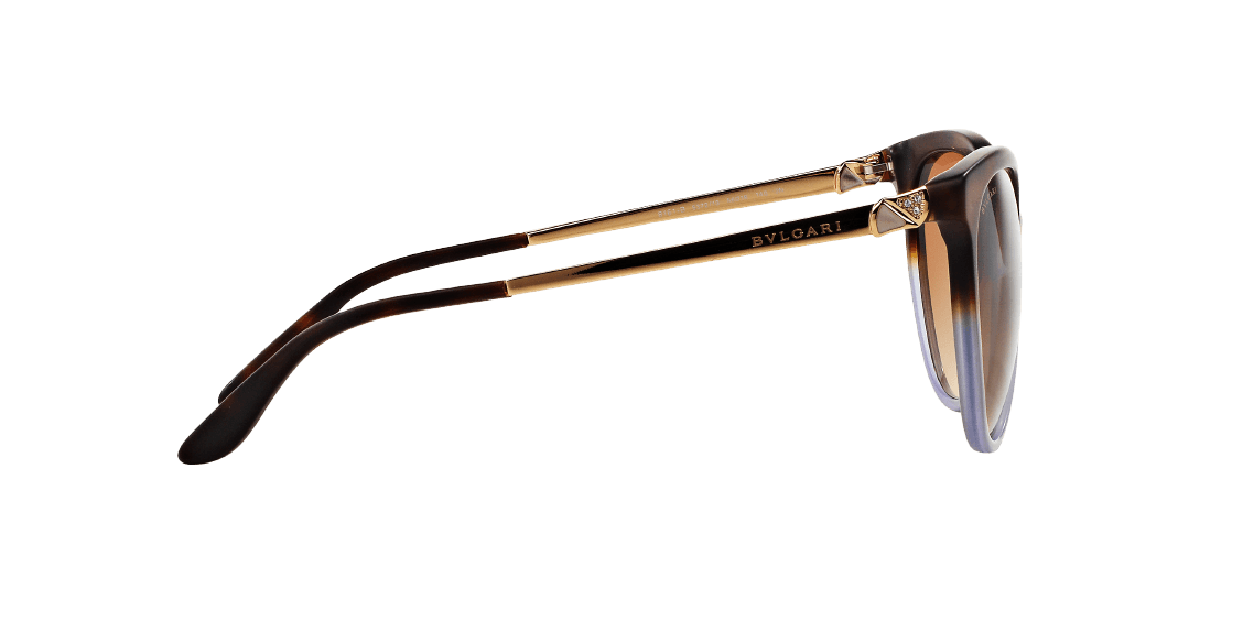 Bvlgari BV8161B 5363-4L is a full rim frame for women which is made of plastic material. Features of sunglasses are brown color frame with blue gradient lens in cateye shape. The logo of Bvlgari is displayed on the temple.