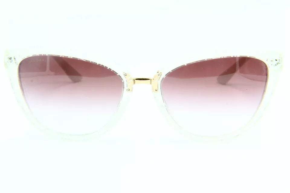 Bvlgari BV8165 5375-8H is a full rim frame for women which is made of acetate material. Features of sunglasses are white color frame with violet gradient lens in cat-eye shape. The logo of Bvlgari is displayed on the temple.