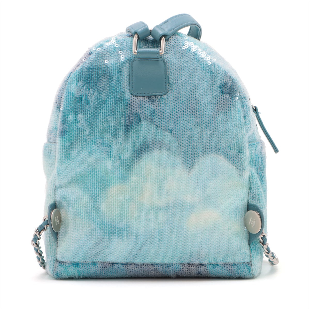 Chanel CC Logo Waterfall Sequins Leather Chain Backpack Light Blue