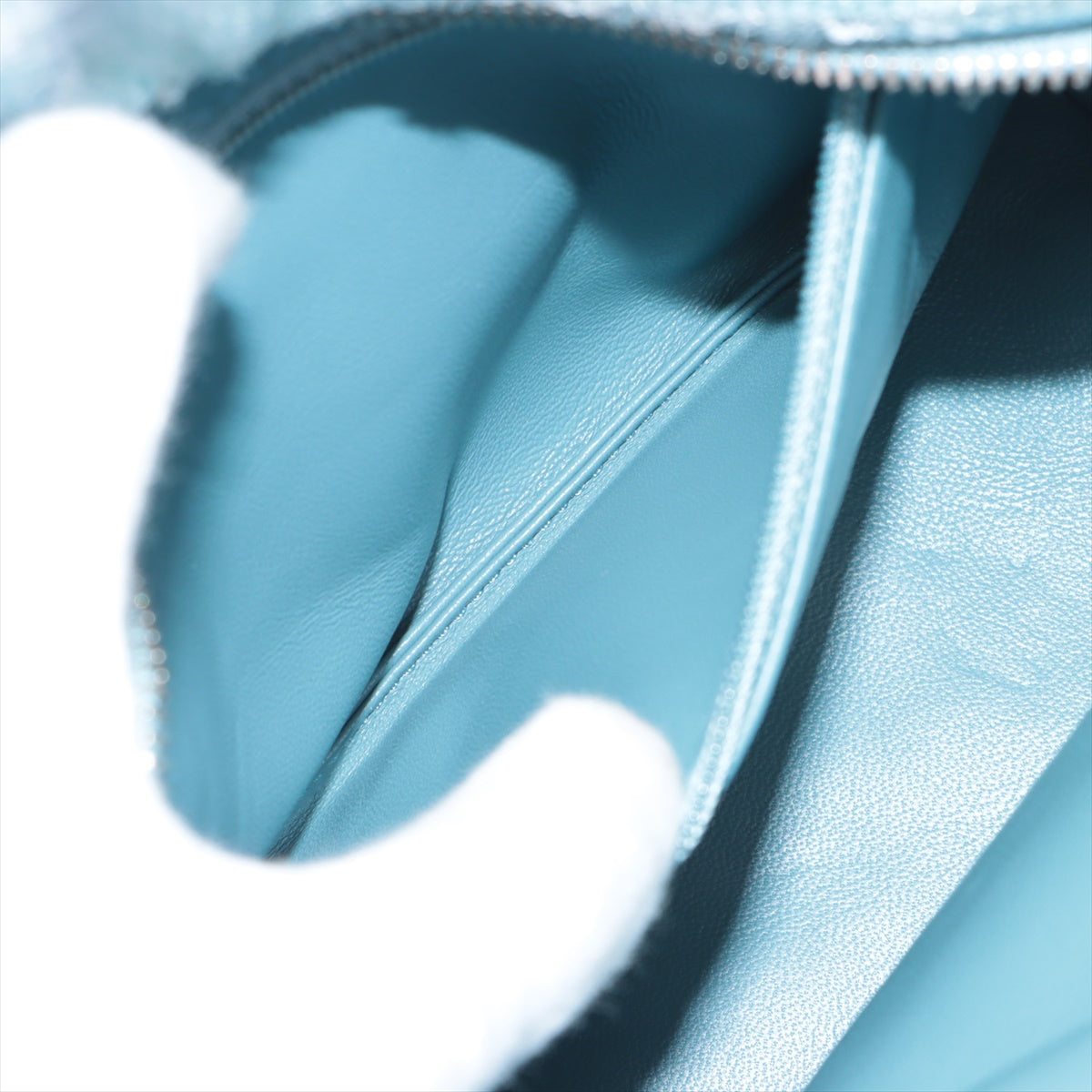- Stylish light blue leather with cascading sequins and iconic CC logo.