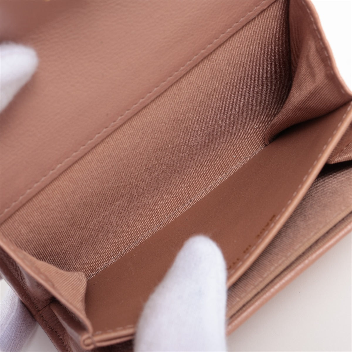 The Chanel Logo Leather Coin Purse in Pink Beige is a delightful fusion of elegance and practicality. Crafted from premium leather with Chanel's iconic matelasse quilting, its soft pink beige hue adds a touch of elegance to any ensemble. The gold-tone Chanel plaque on the front elegantly spells out the iconic brand name, infusing the accessory with unmistakable Chanel charm. Adding a touch of glamour, two rhinestone stones adorn the plaque, catching the light with subtle sparkle. Secured with a snap-lock closure, the coin purse ensures your valuables are safe and easily accessible. Compact yet functional, it's perfect for organizing coins, cards, or small essentials with effortless style.