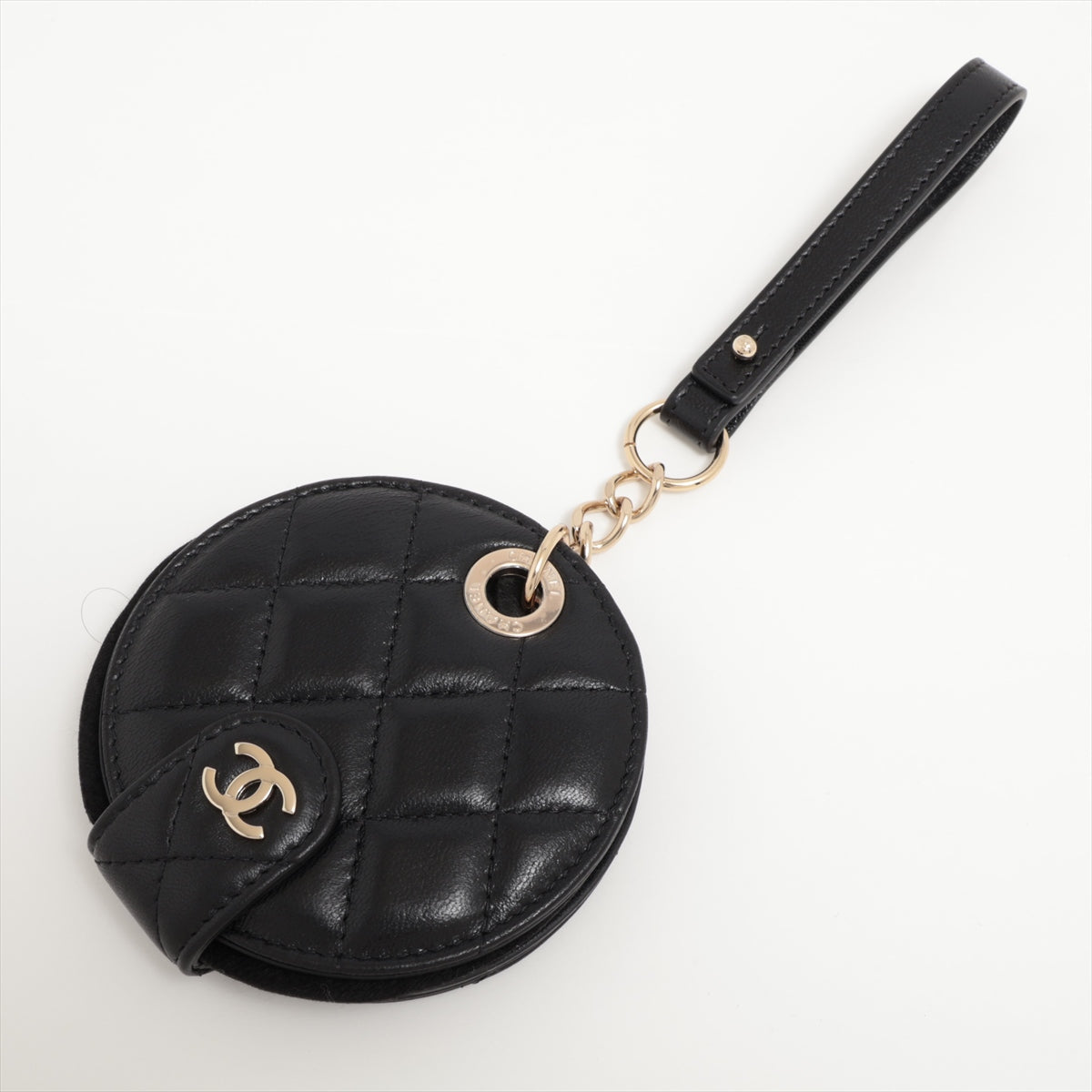 Chanel Matelasse Lambskin Round Luggage Tag Charm Black