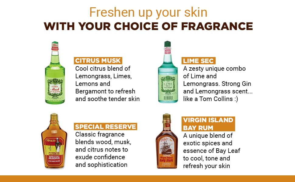 The signature scent of Clubman Virgin Island Bay Rum is instantly recognizable. It opens with an energizing burst of clove and cinnamon, balanced by zesty citrus and warmed by a subtle background of sweet vanilla and rum. The result is a spicy, masculine aroma that captures the essence of old-world barbershops, island adventures, and rugged charm. It’s both invigorating and comforting — bold without being overpowering.