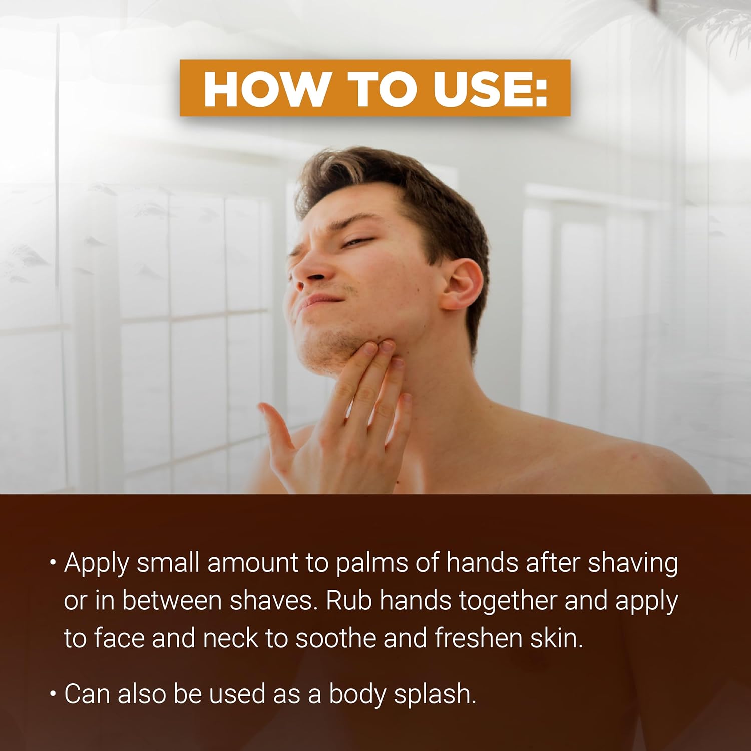 After shaving, pat your face dry and splash a small amount of the cologne into your hands. Apply to your face and neck. For a longer-lasting fragrance, you can also apply to pulse points such as wrists or chest. Reapply throughout the day for a quick burst of freshness.