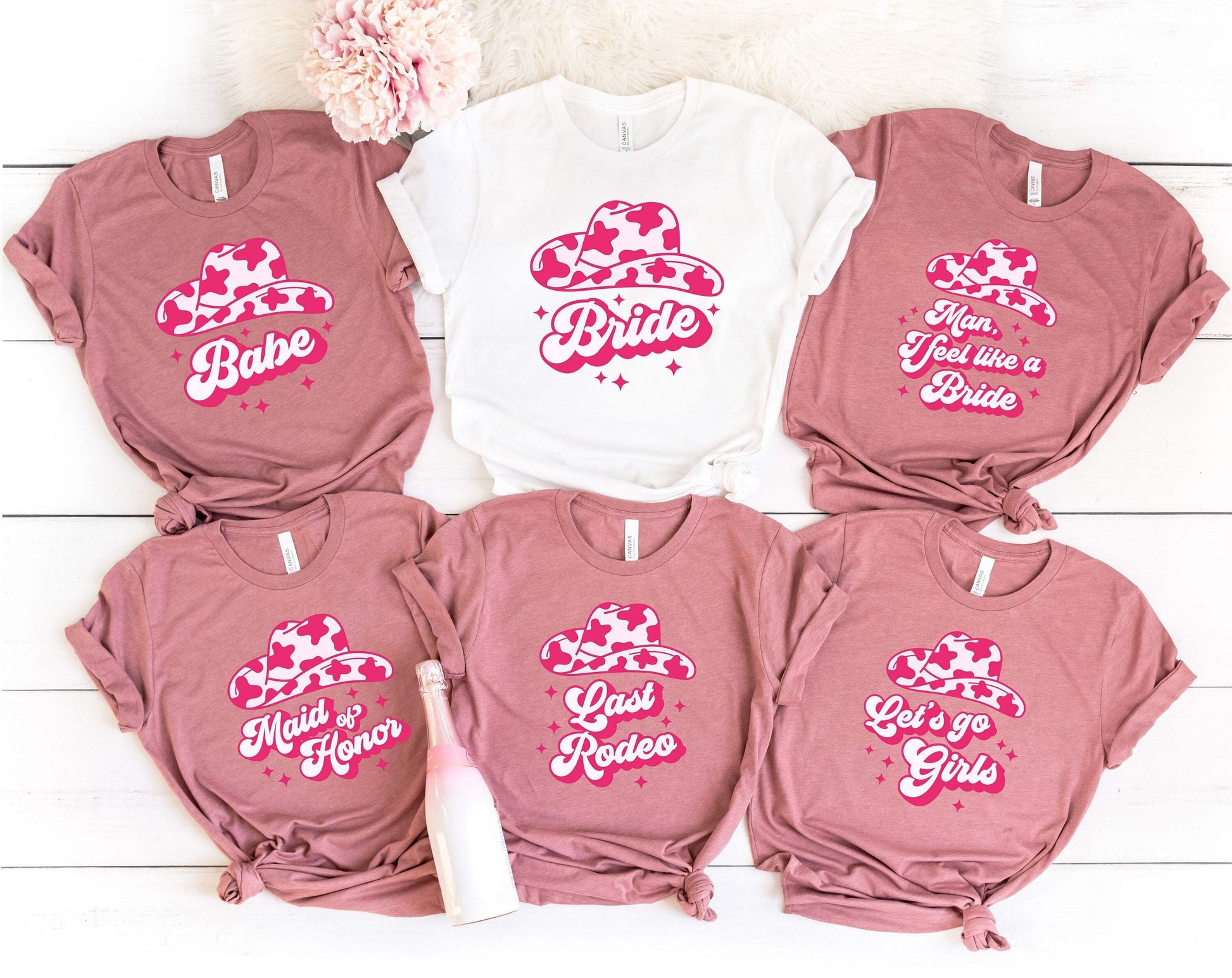 Whether you're attending a Western-themed wedding or planning a bachelorette party, Barber Sets Fashion has the perfect cowgirl hat bride shirt for you. Our shirts are designed to make you feel confident and stylish, while still maintaining a comfortable fit.