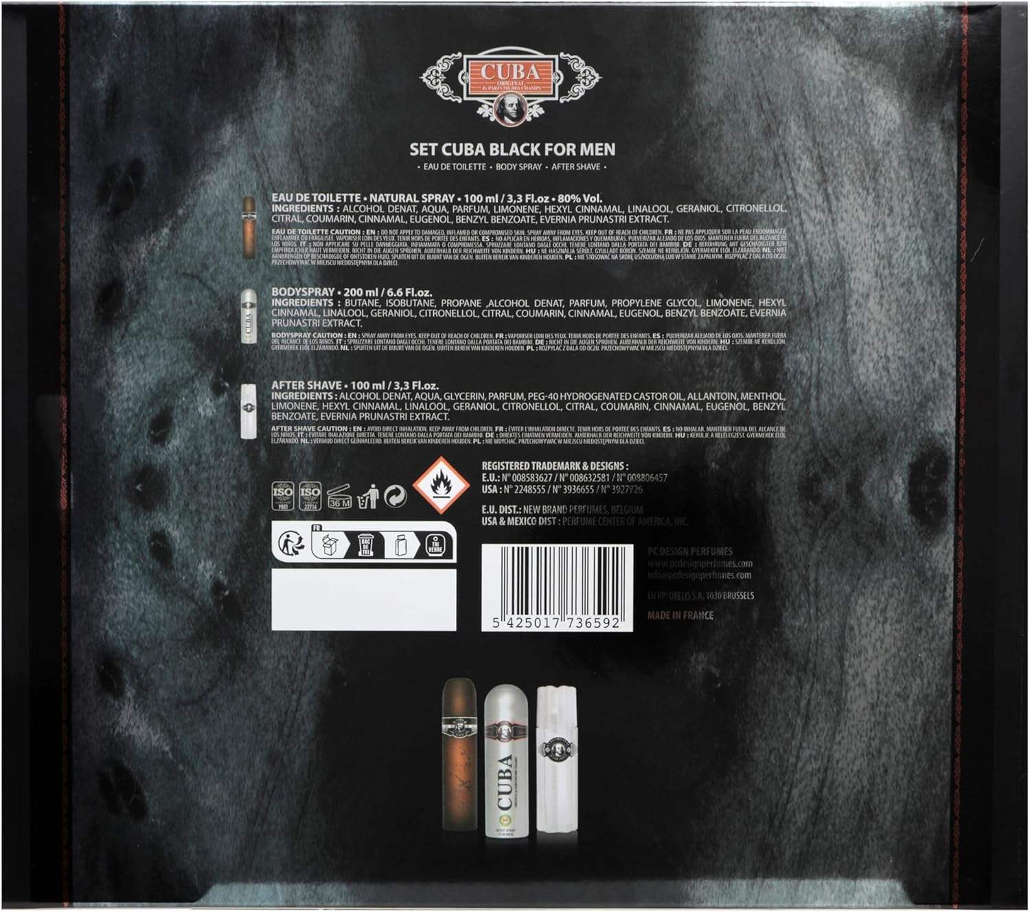 Cuba Black by Cuba for Men - 3 Pc Gift Set 3.3oz EDT Spray, 3.3oz After Shave, 6.7oz Body Spray