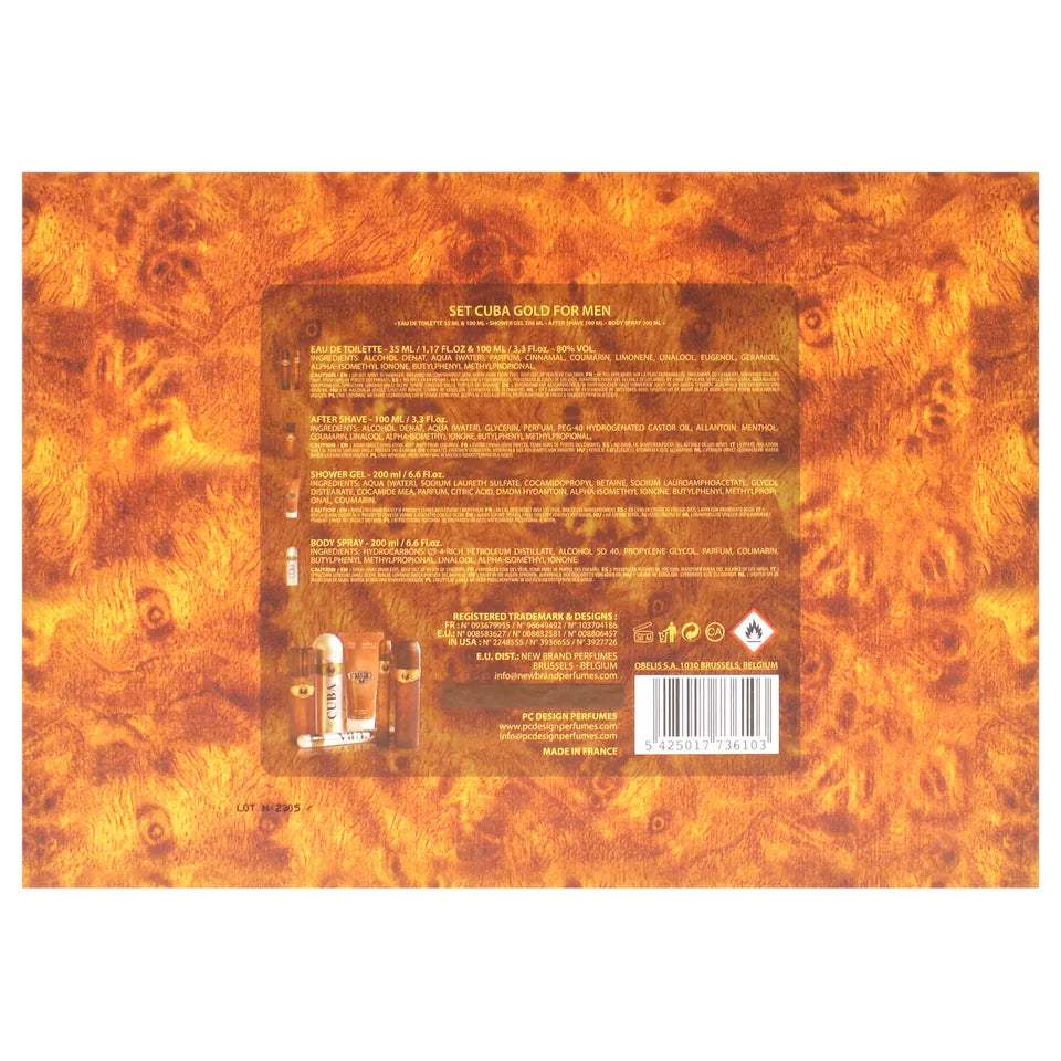 Cuba Gold Must Have by Cuba for Men - 5 Pc Gift Set 3.3oz EDT Spray, 1.17oz EDT Spray, 3.3oz After Shave, 6.7oz Body Spray, 6.7oz Shower Gel