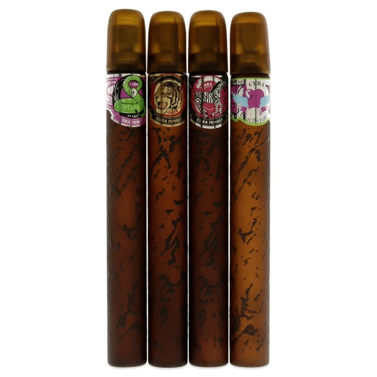 Cuba Jungle by Cuba for Women - 4 Pc Gift Set 1.17oz Cuba Snake EDP Spray, 1.17oz Cuba Tiger EDP Spray, 1.17oz Cuba Zebra EDP Spray, 1.17oz Cuba Heartbreak EDP Spray