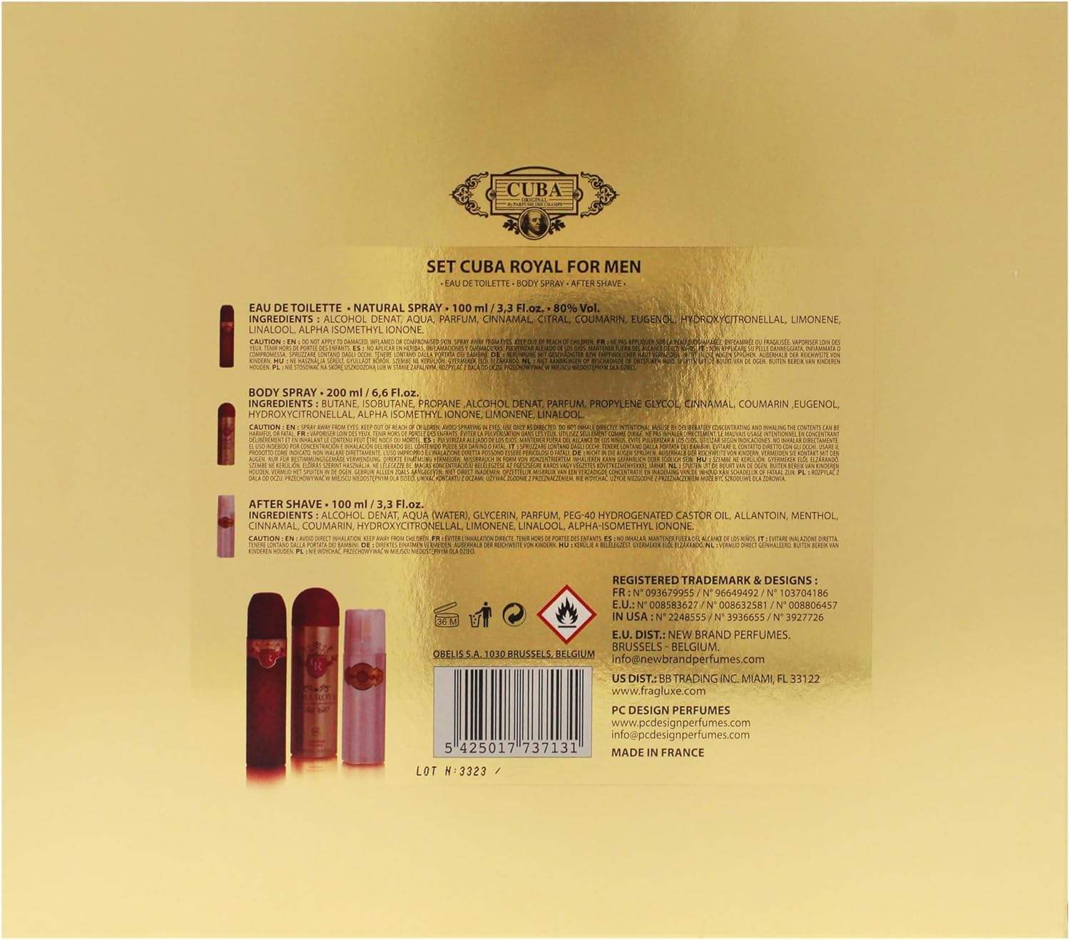 Cuba Royal by Cuba for Men - 3 Pc Gift Set 3.3oz EDT Spray, 6.7oz Body Spray, 3.3oz After Shave