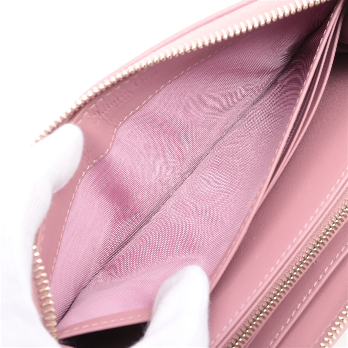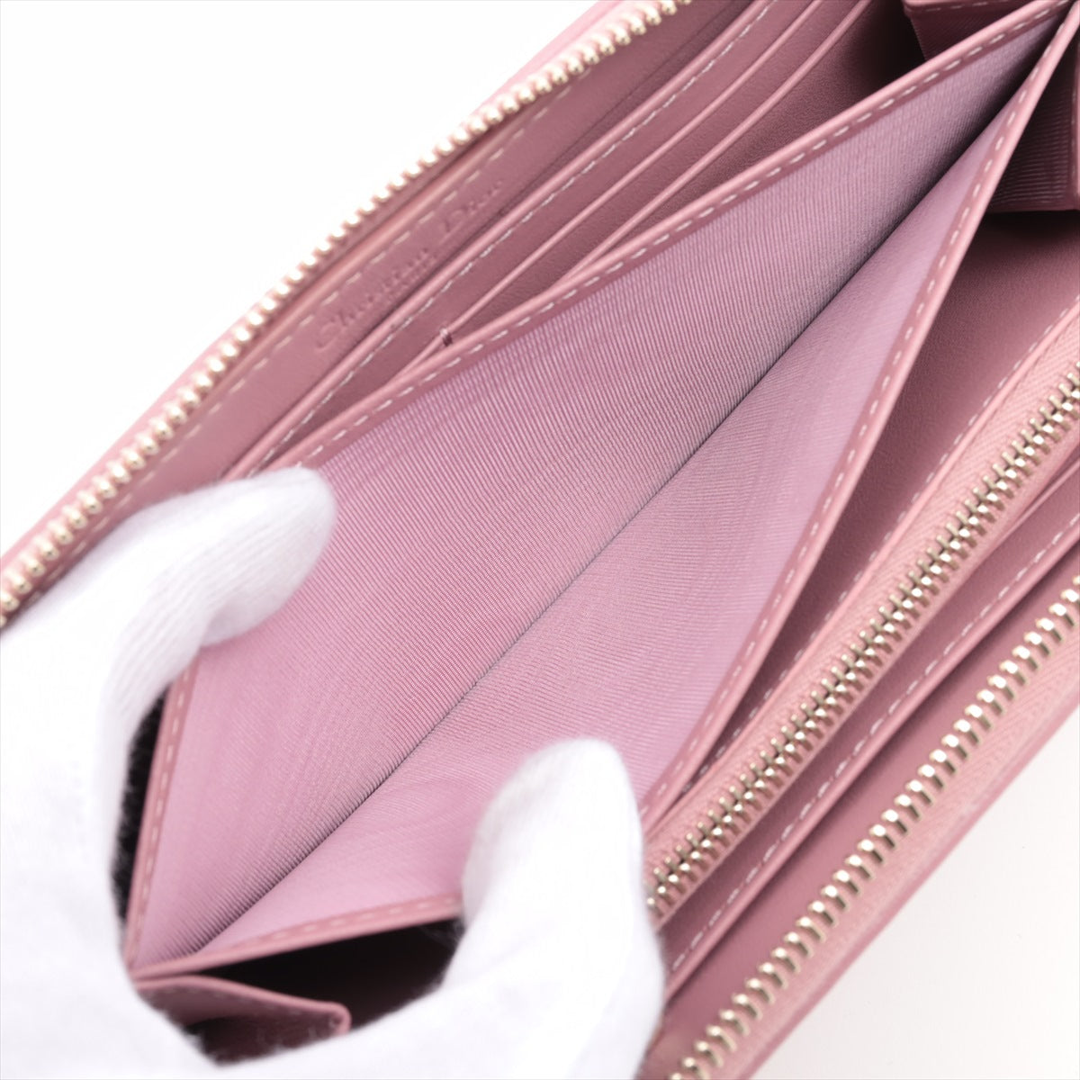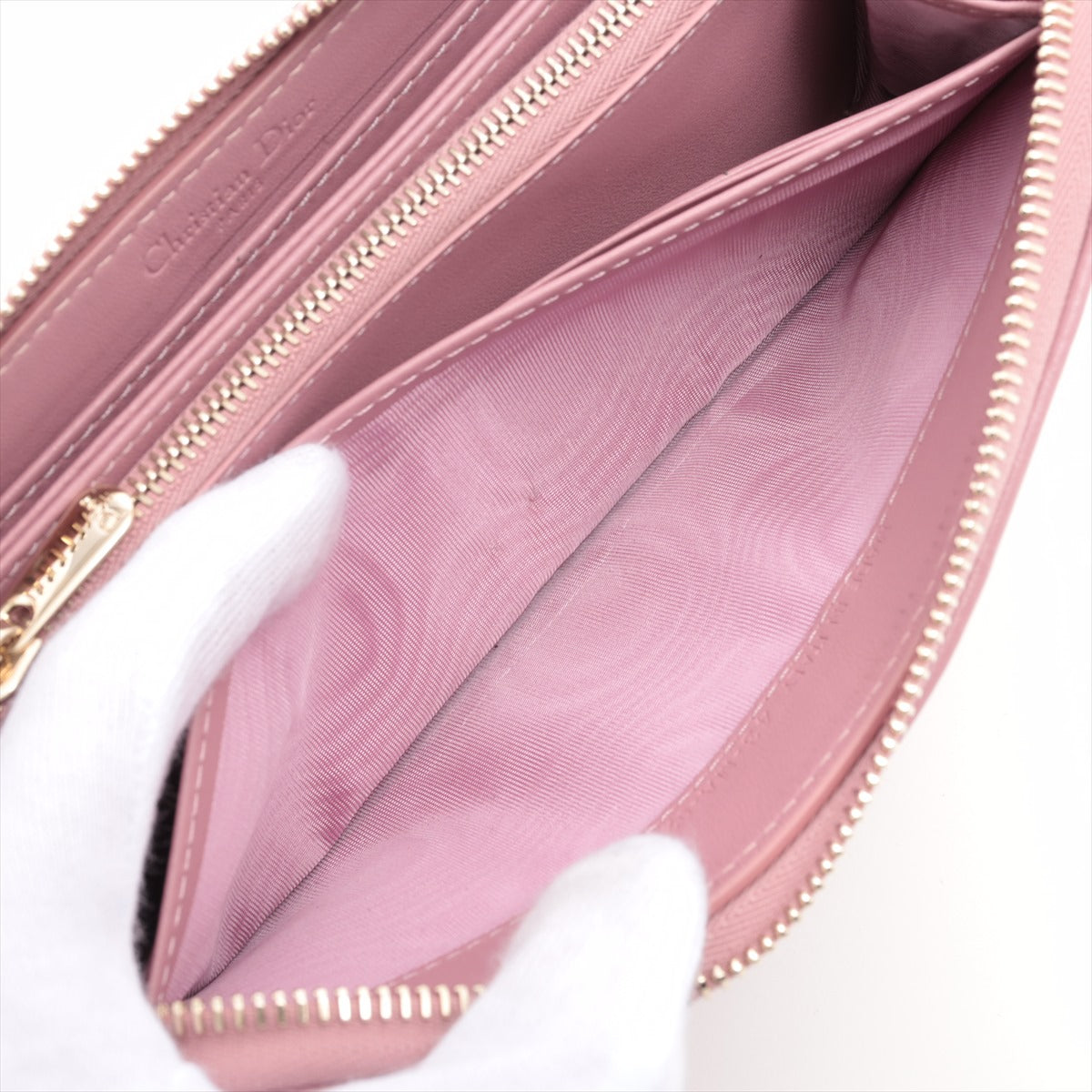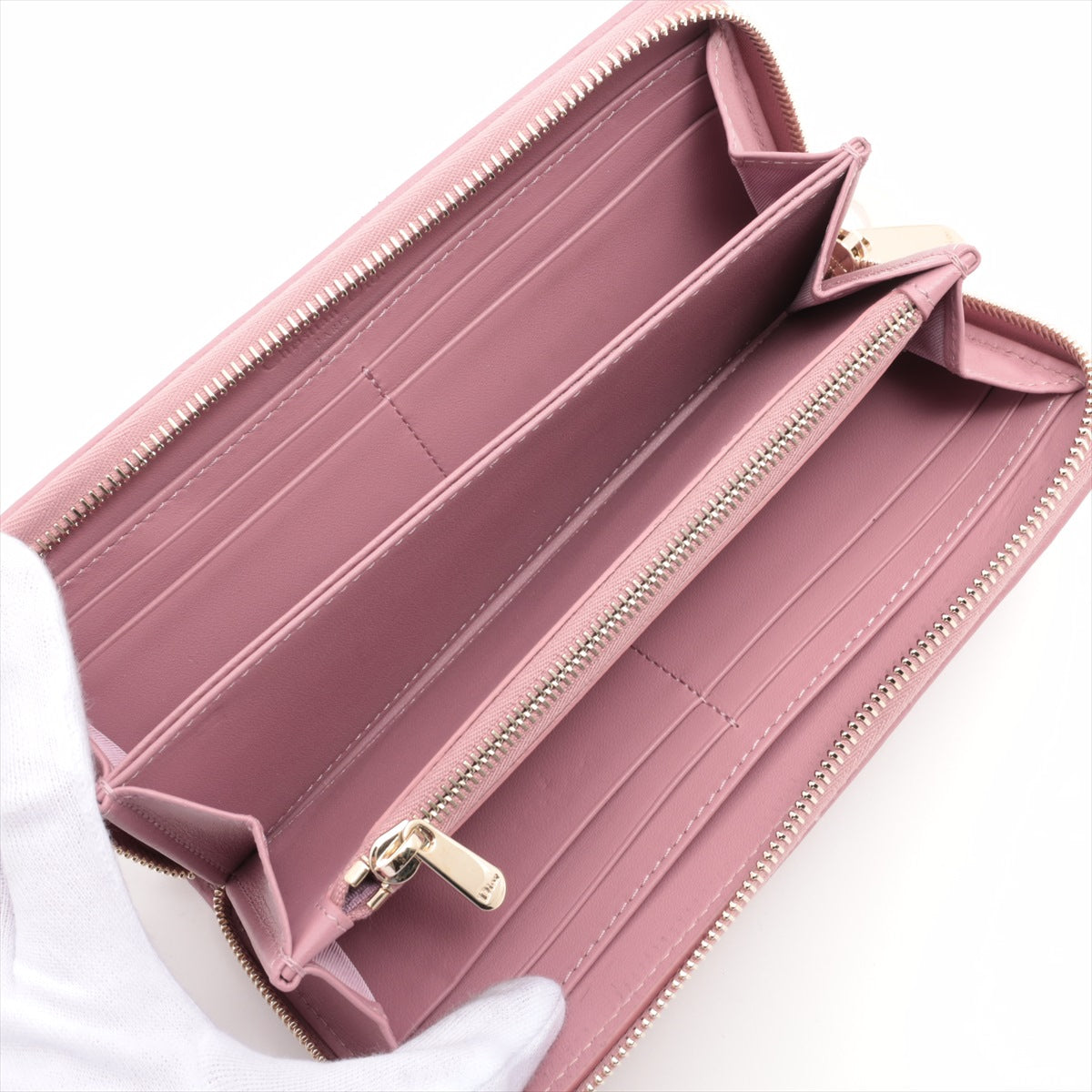Dior Lady Dior Leather Zip Around Wallet Pink