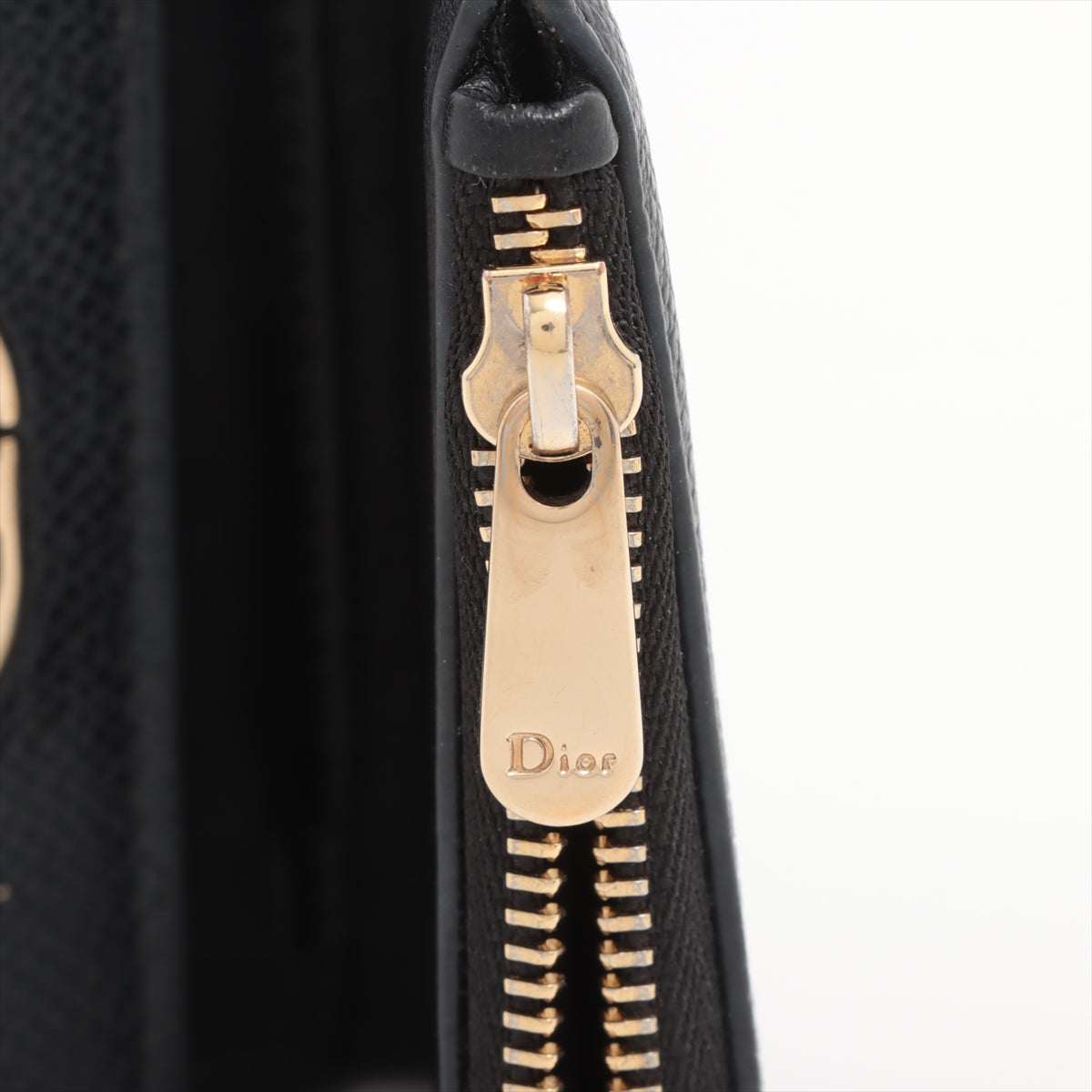 - Luxurious black leather trifold wallet by Dior Montaigne.