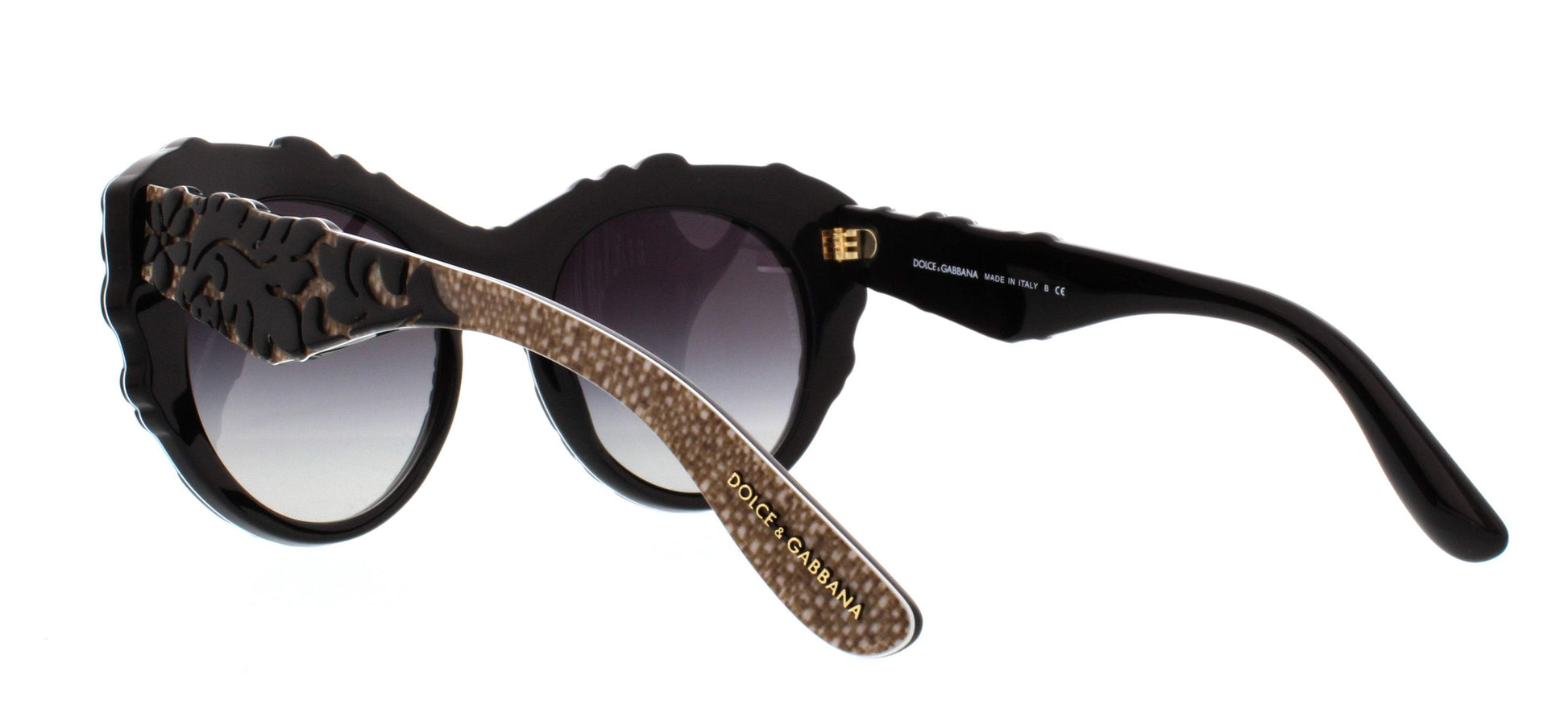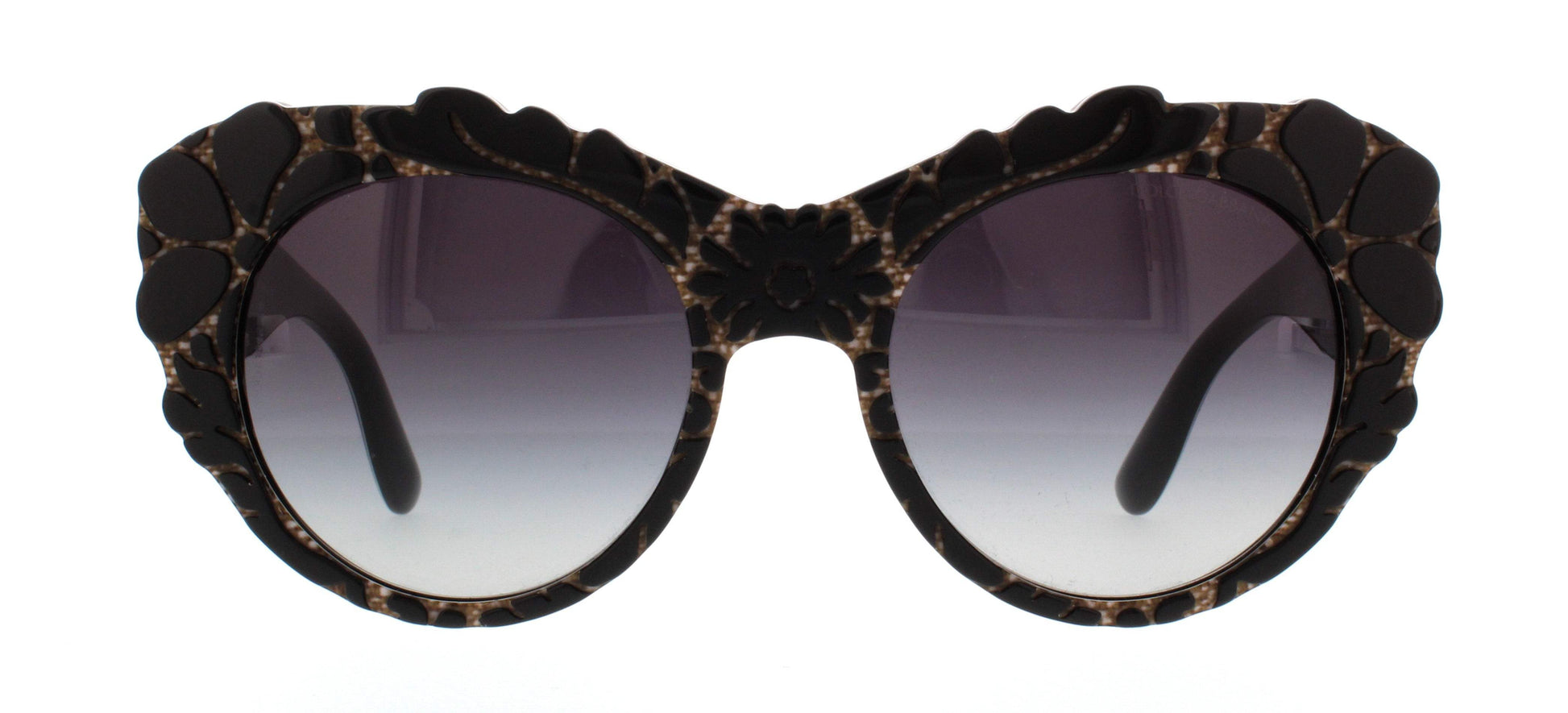 DG 4267 2998-8G is a full rim frame for women which is made of plastic material. Features of sunglasses are black texture tissue color frame with grey gradient lens of a round shape. The logo of Dolce & Gabbana is displayed on the temple.