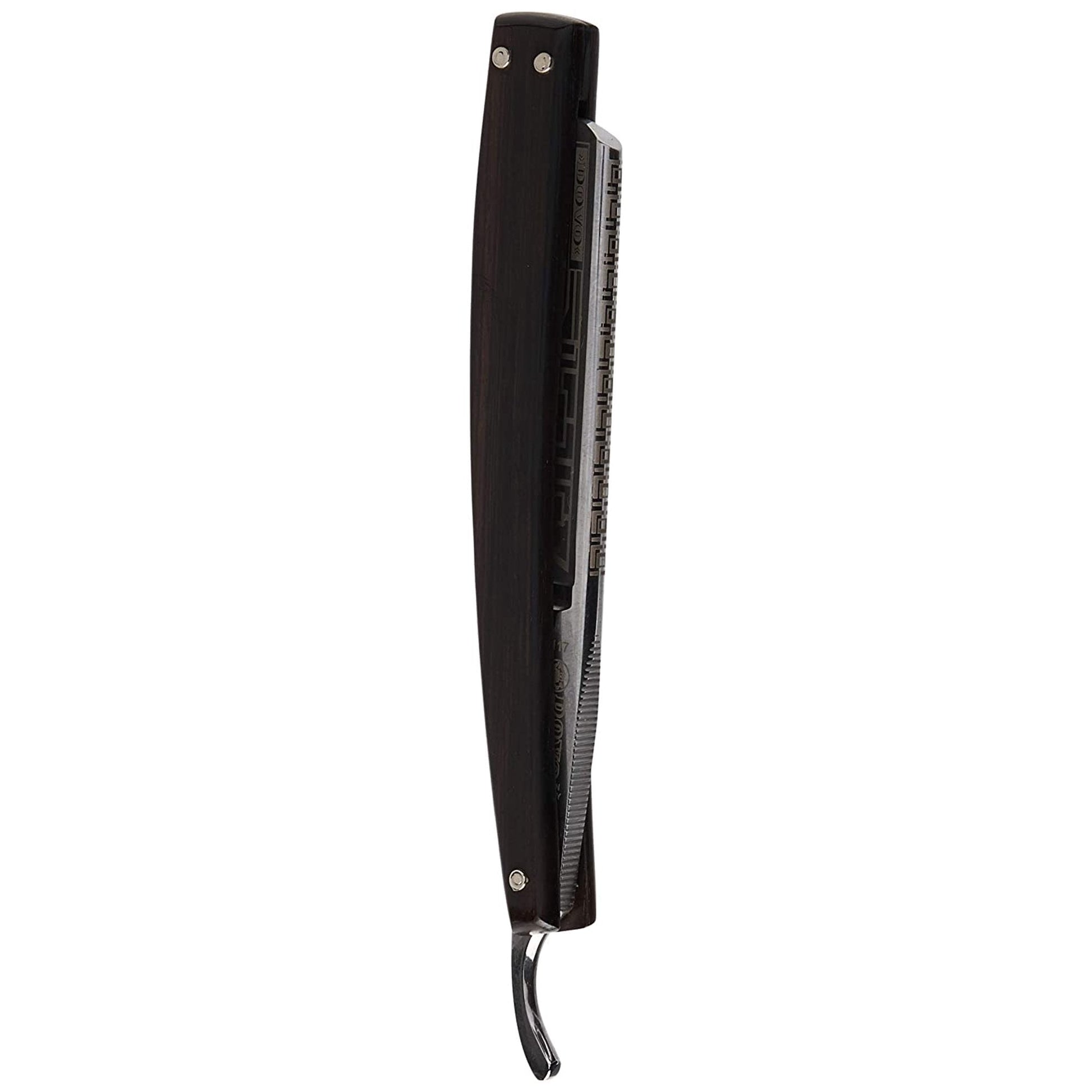 The standout feature of this straight razor is its African Blackwood handle, a luxurious and rare hardwood known for its deep, rich color and exceptional durability. Sourced sustainably, African Blackwood is prized for its density and moisture resistance, making it an ideal material for shaving tools that are both beautiful and functional. The sleek black grain patterns lend an unmistakable air of refinement, transforming each shave into a ritual of sophistication.