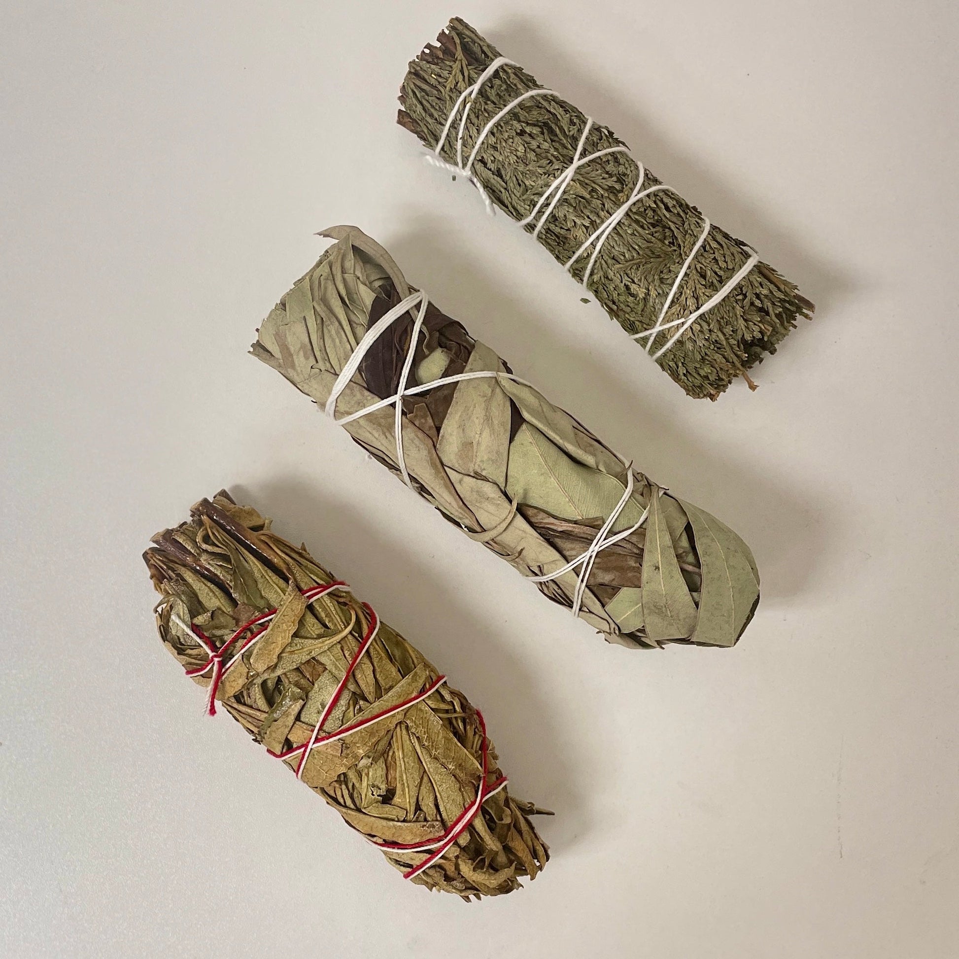 Set includes dried bundles featuring the aromatic wonders of Cedar Incense, Eucalyptus, and Yerba Santa.