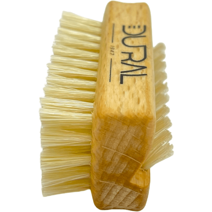 Dural Hand brush is a travel-sized brush made of beech wood that has been oiled with a pure, light natural oil. The brush measures 59x29mm and features 1/5 rows of soft bristles. The beech wood material used for the brush is durable, and the natural oil enhances its appearance while providing protection. The compact size of the brush makes it easy to carry around, and the soft bristles are gentle on the scalp and hair.