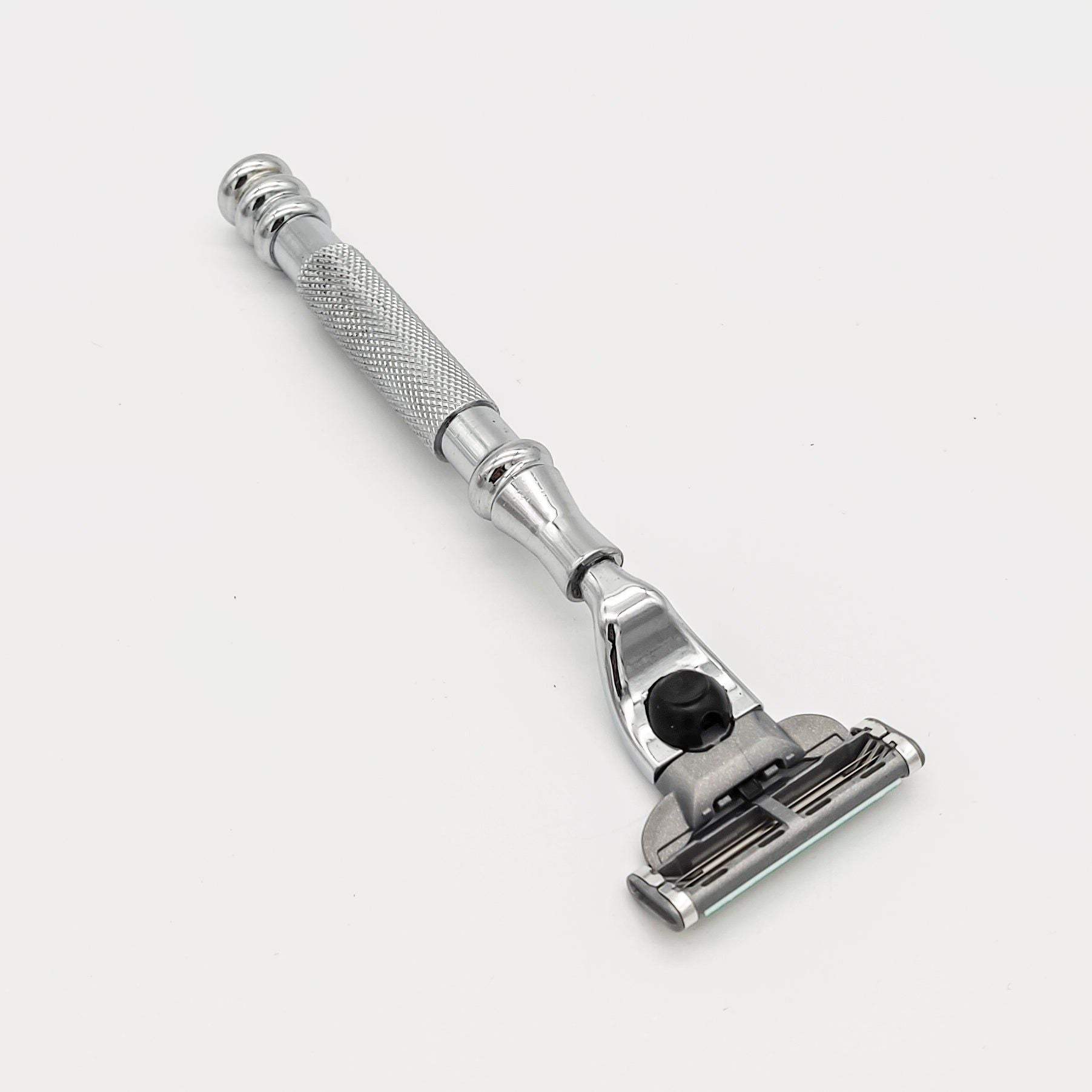 Properly weighted and balanced handle helps reduce pressure placed on the skin during shaving.