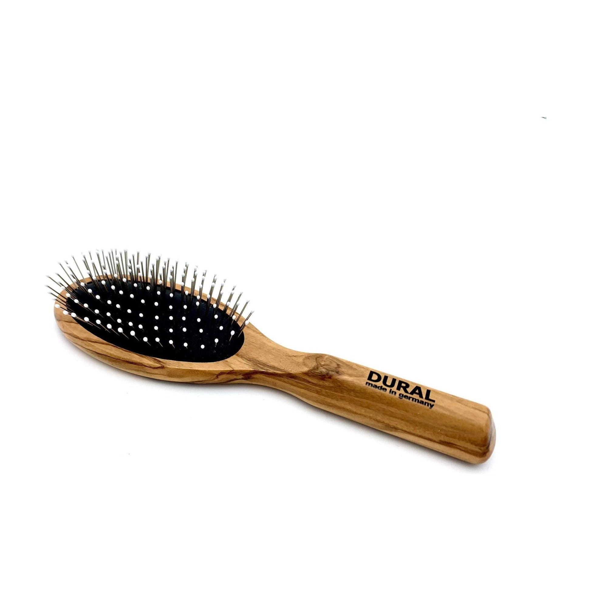 Dural Hair Brush For Styling & Care Rubber Cushion Metal Pins With Plastic Ball Tips Olive wood