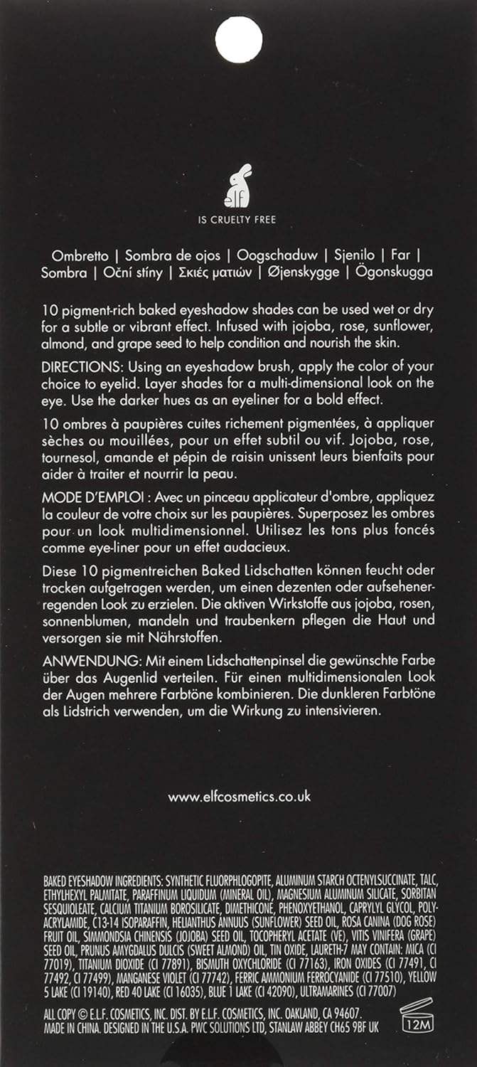 Each Baked Palette features 10 gorgeous baked eyeshadows so you can achieve a flawless look whenever, wherever. The silky and blendable formula of our Baked Eyeshadow provides smooth and even application with each sweep of color. Baked in an oven, these eyeshadows offer rich pigmentation for a beautiful effect. Infused with active key ingredients Jojoba, Rose, Sunflower, Apricot and Grape to nourish and hydrate the skin. The long-lasting and shimmering color can be worn wet for a vibrant effect or dry for sheer pigmentation, offering a variety of gorgeous eye looks!