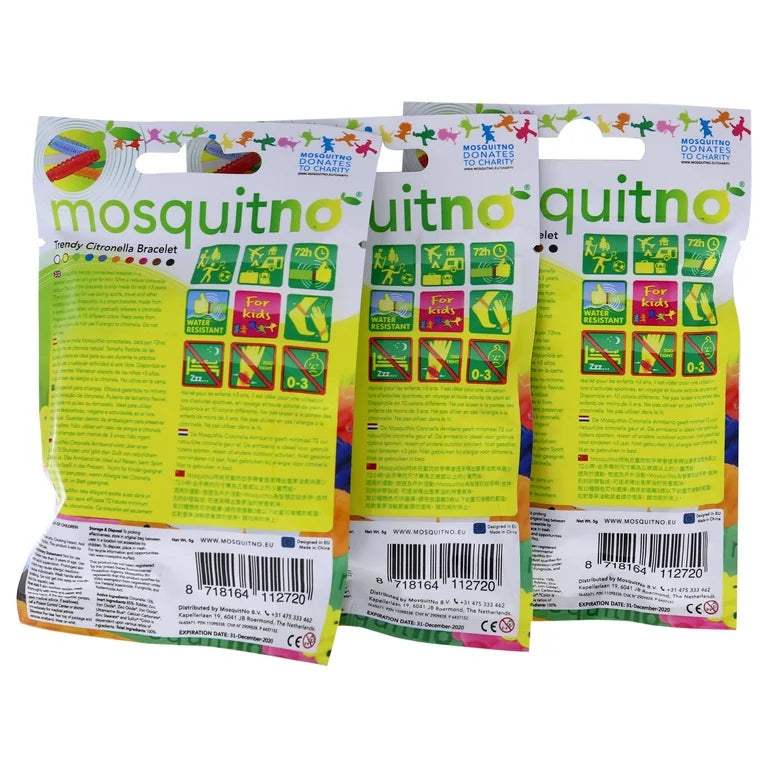 Get Connected Citronella Bracelet Set by Mosquitno for Kids - 3 Pc Bracelet Light Blue, Pink, Blue