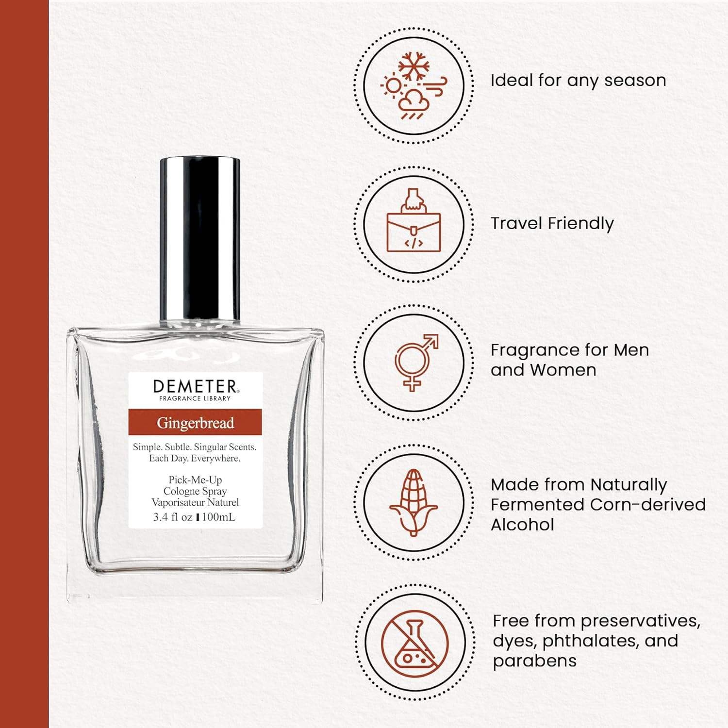 The Gingerbread Cologne Spray by Demeter is a delightful fragrance designed specifically for women. This oriental vanilla fragrance captures the warm and comforting scent of freshly baked gingerbread. With its unique blend of gingerbread, vanilla, ginger, and sweet notes, it evokes a sense of nostalgia and holiday cheer.