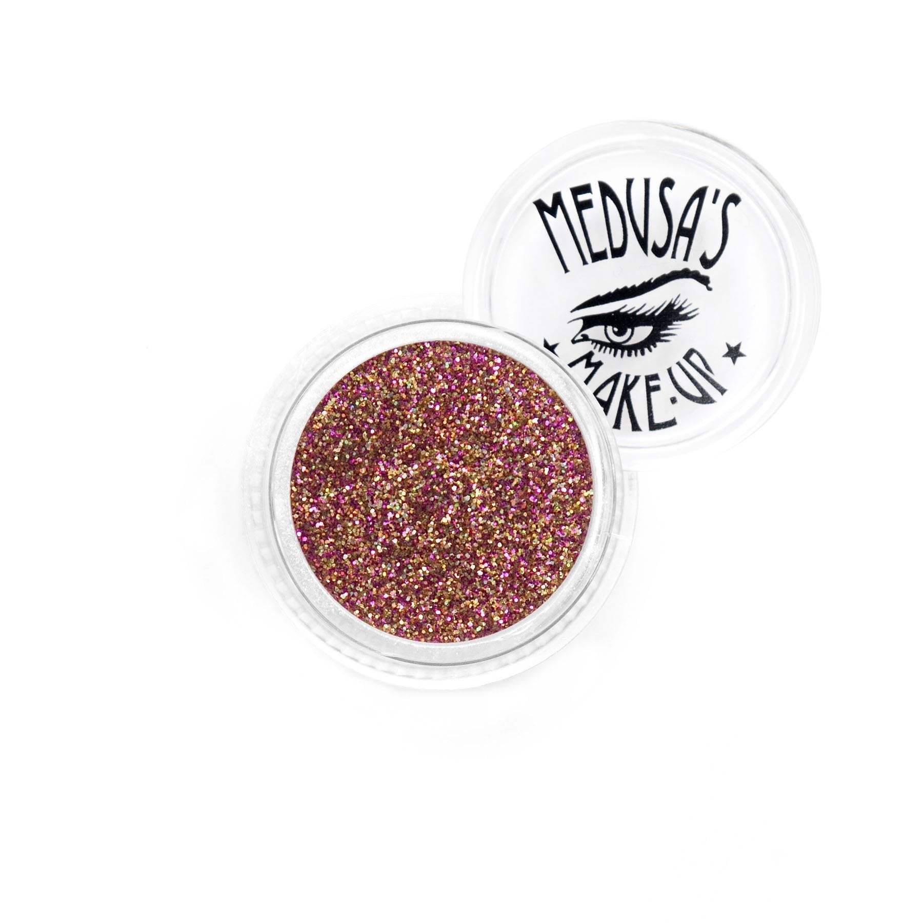 Medusa's Make-Up glitter powders are truly like fairy dust! These cosmetic grade, micro sparkle, vegan glitter eyeshadows can be great for party makeup, festival makeup and cheerleader makeup. Can be applied to eyes, lips and face.