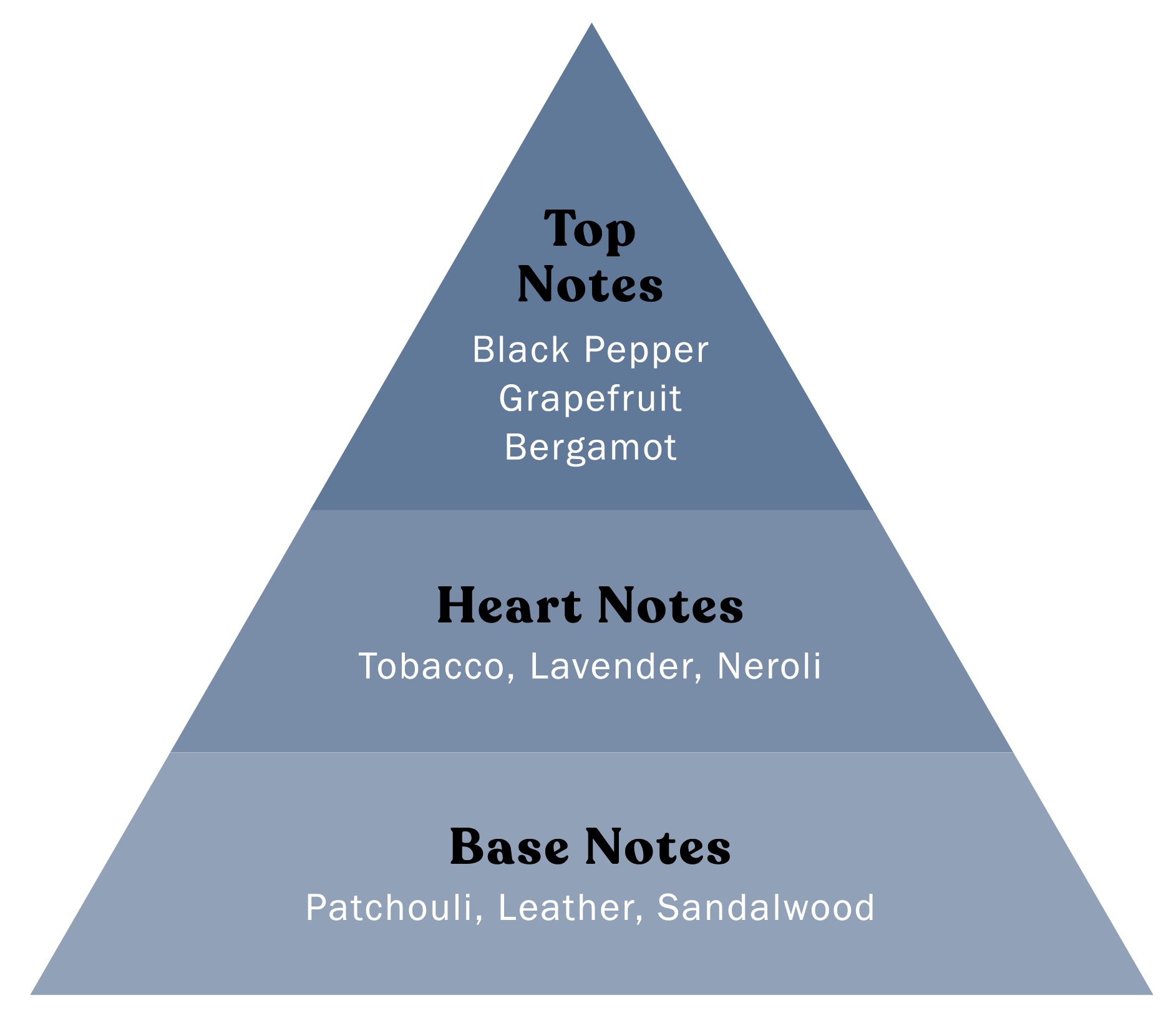 Leather, tobacco, pink pepper and grapefruit construct a deeply rich and masculine aroma with just a dollop of sweetness (like the Magnificent Bastard himself). Exudes power, intelligence, and unpretentious and unequaled panache.
