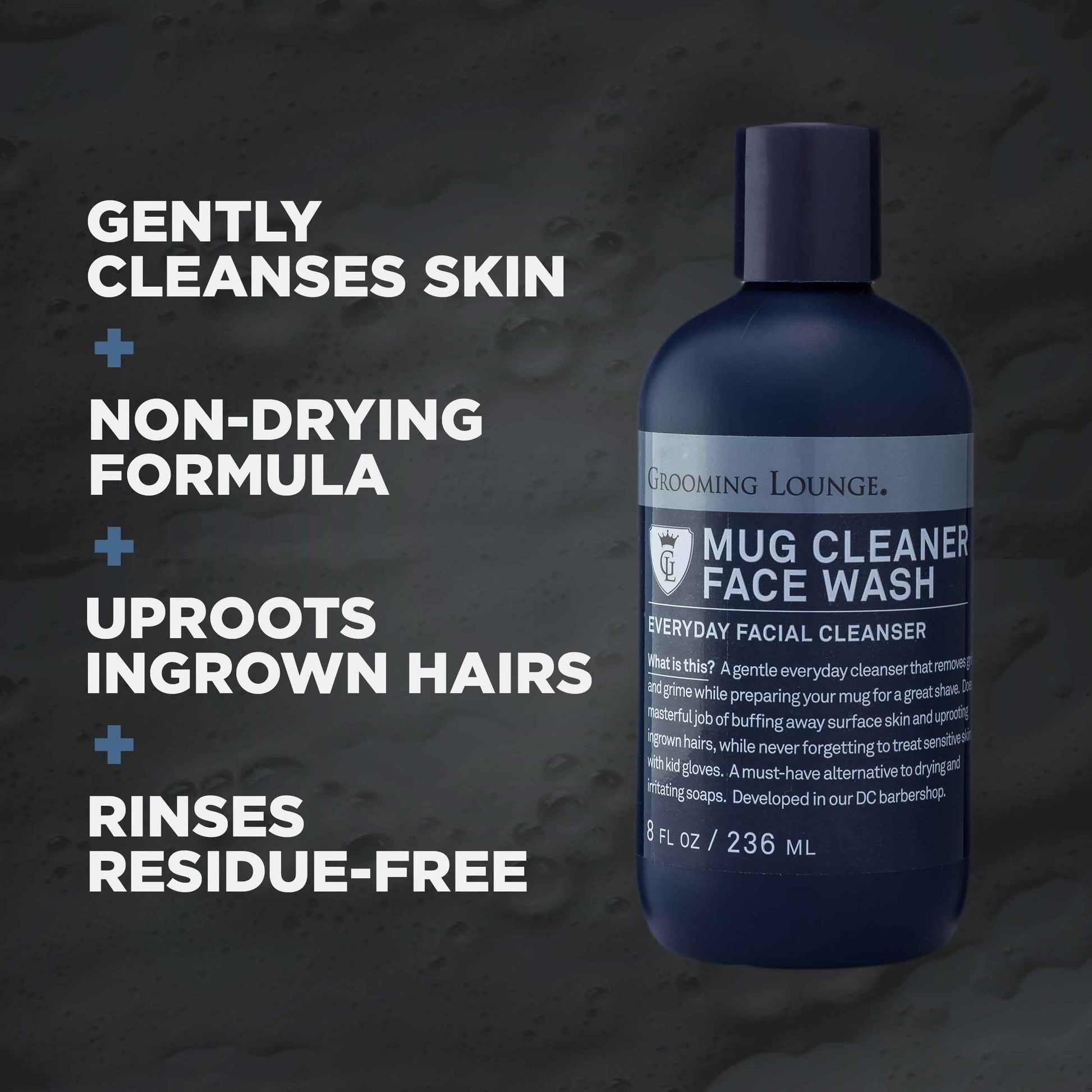 - While other cleansers leave behind residue that weighs facial hair down, this one strips only the bad stuff and leaves your whiskers standing at attention.