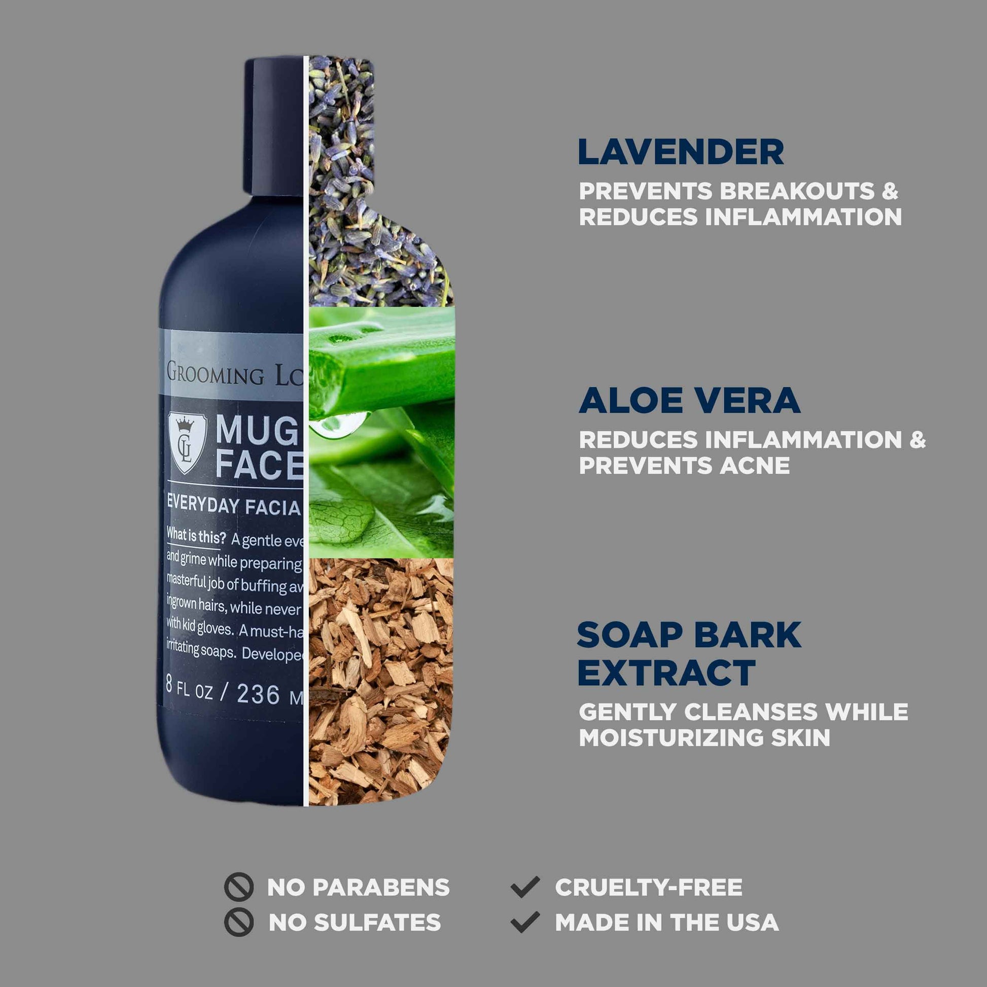 Key Ingredients: Lavender (Clean & Energizes), Aloe (Moisturizes) & Rosemary Oil (Fights Blemishes)