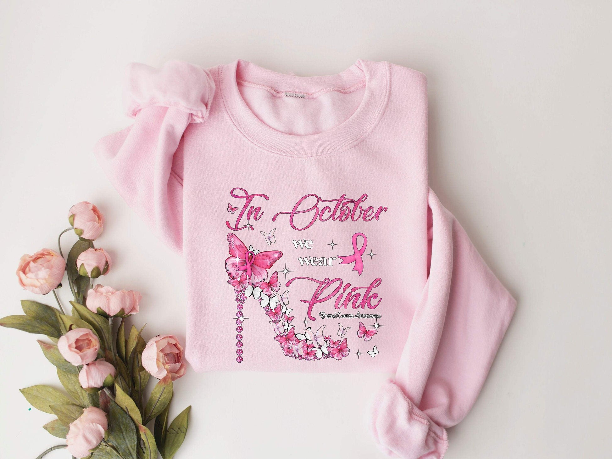 In October We Wear Pink, Breast Cancer Awareness, Cancer Family Support, Pink Ribbon shirt 100% Cotton T-shirt High Quality