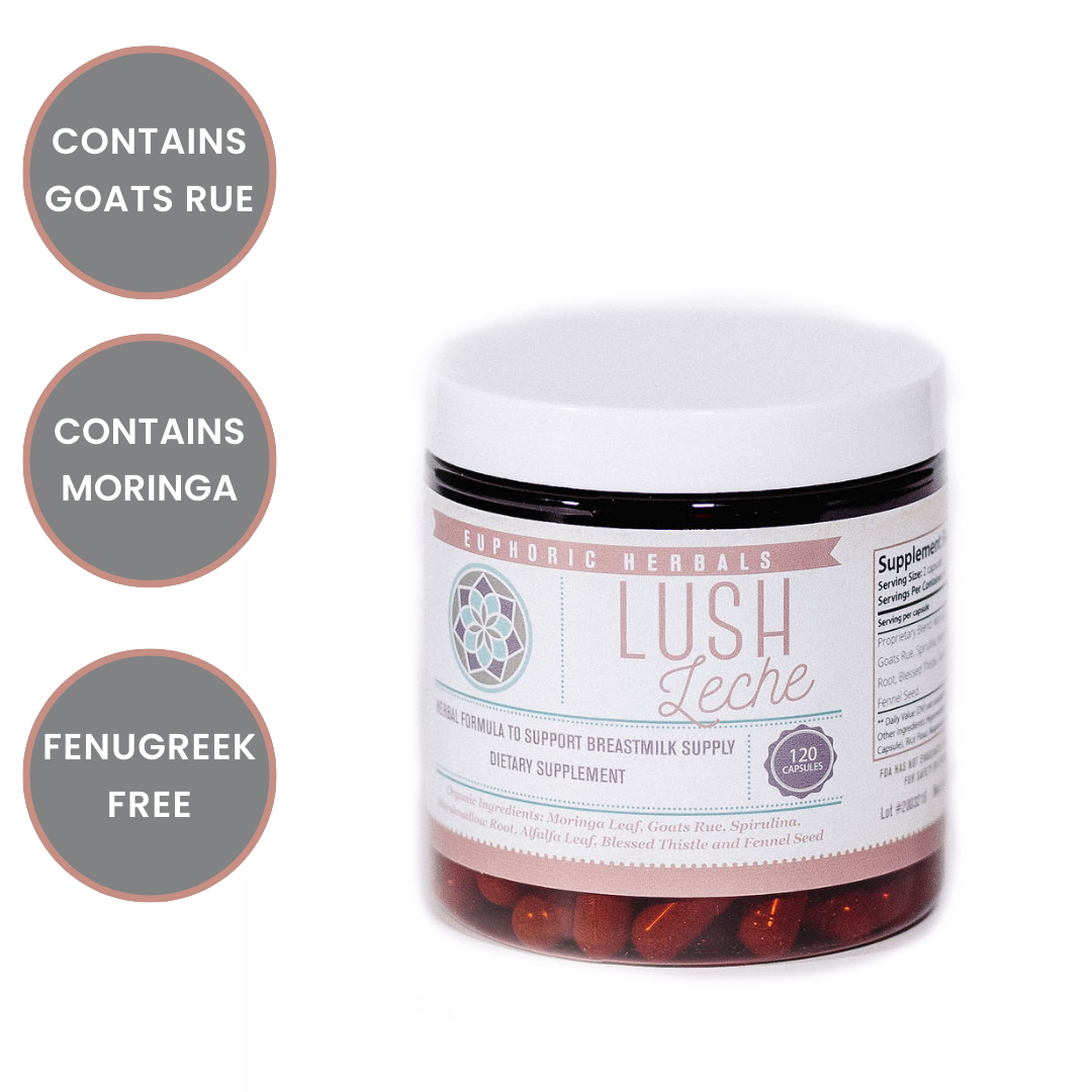 Packed with a powerful blend of carefully selected ingredients, including Moringa Leaf, Goats Rue, Spirulina, Marshmallow Root, Blessed Thistle, Alfalfa Leaf, and Fennel Seed, Lush Leche offers a comprehensive solution to boost lactation and promote overall maternal wellness.