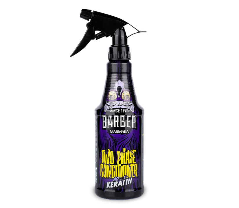 To use the Marmara Barber Two Phase Conditioner No.1 Keratin, the bottle is shaken to mix the two phases. The product is then sprayed onto damp or dry hair, combed through, and left in without rinsing. This leave-in application allows the conditioner to continue working throughout the day, providing ongoing nourishment and protection.