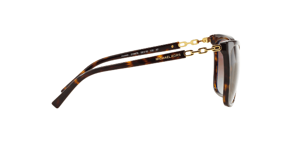 Michael kors mk 6029 3106t5 is a full rim frame for women which is made up of plastic material. Features of sunglasses are gold and brown color with square style with polarized brown gradient lens. The logo is mk display on the temple.