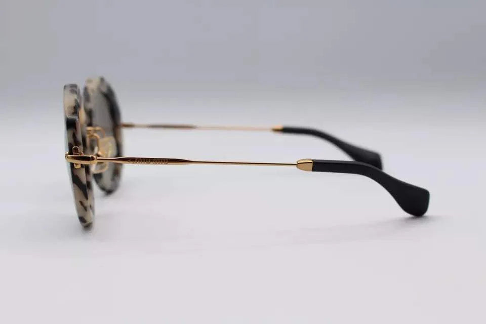 Miu miu mu 13n hao-2e2 has a havana-grey blue metal frame with non-polarised mirrored lenses for women. It comes with a carrying case and cleaning cloth. 100% uv. Protection.