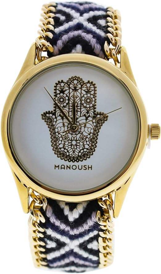 MSHHIWH Hindi Hand - Gold/Black Nylon Strap Watch by Manoush for Women - 1 Pc Watch