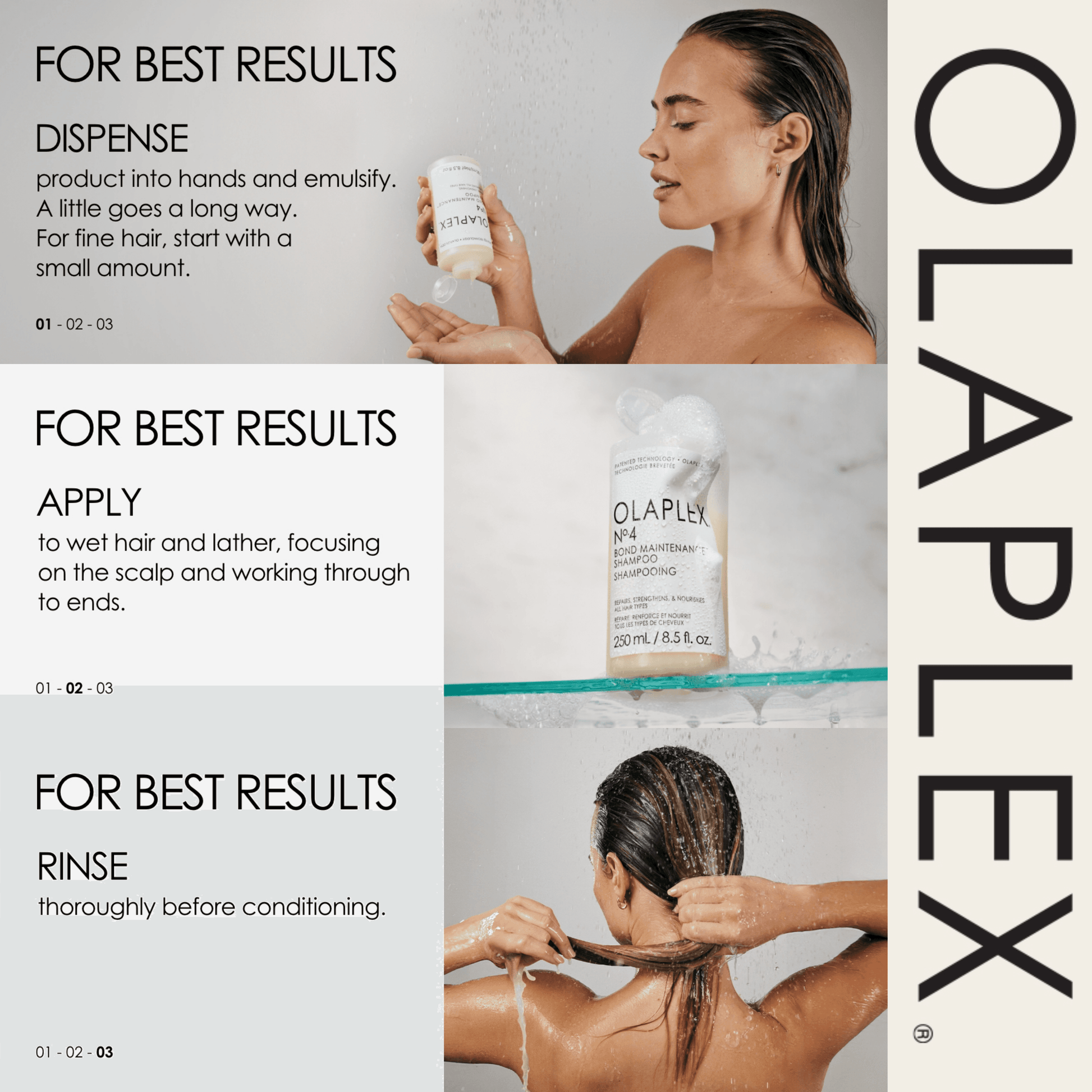 Using Olaplex No.4 Bond Maintenance Shampoo is simple. Follow these steps for optimal results: