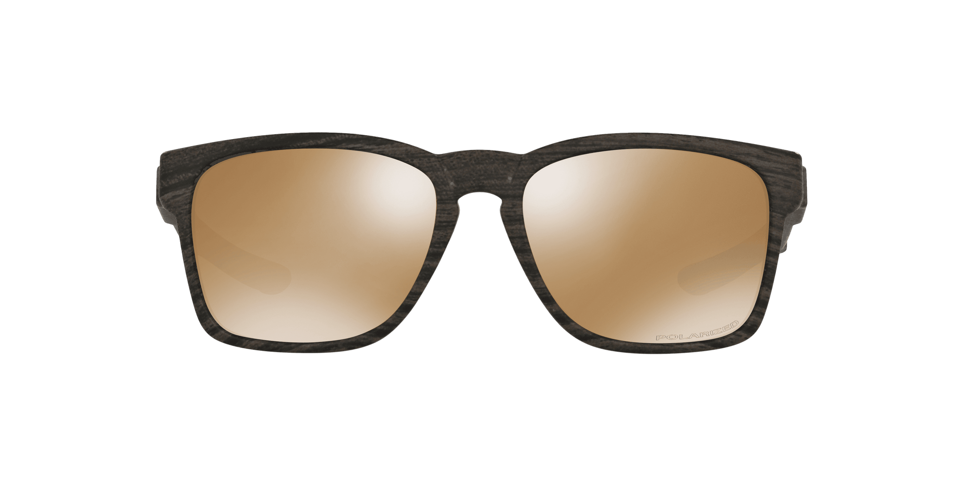 Oakley Gatalyst OO9272-16 is a full rim sunglass for men. This sunglass features woodgrain frame and tungsten iridium polarized colored lens. Conventional lenses can magnify images, gives less distorted vision across the entire field of view.