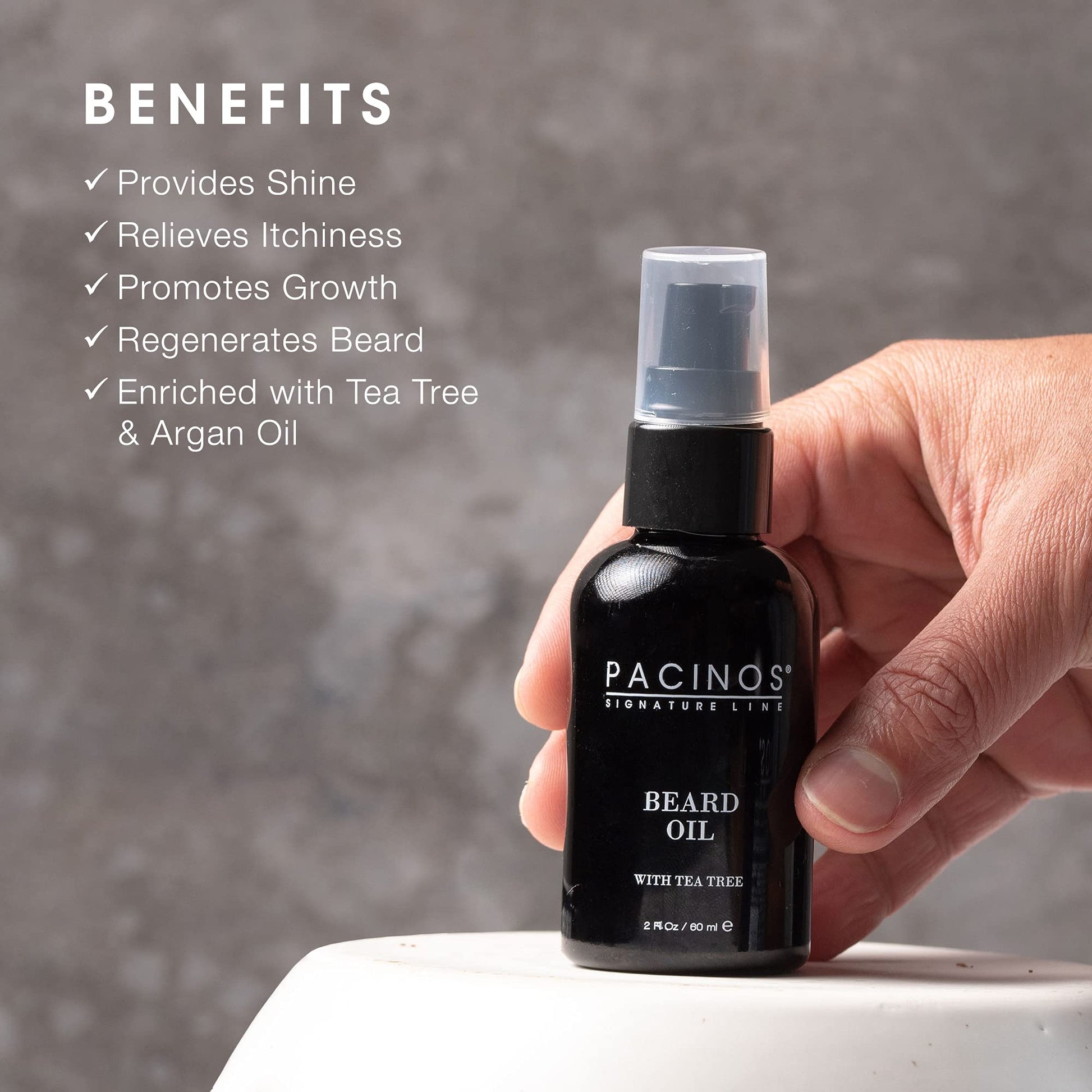 In summary, Pacinos Beard Oil 2 oz is a high-quality product that combines the benefits of Argan Oil and Tea Tree Oil to nourish, condition, and promote a healthy, well-groomed beard. Its regular use can help to eliminate beardruff, relieve itchiness, and enhance the beard's shine and overall appearance