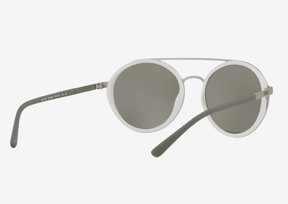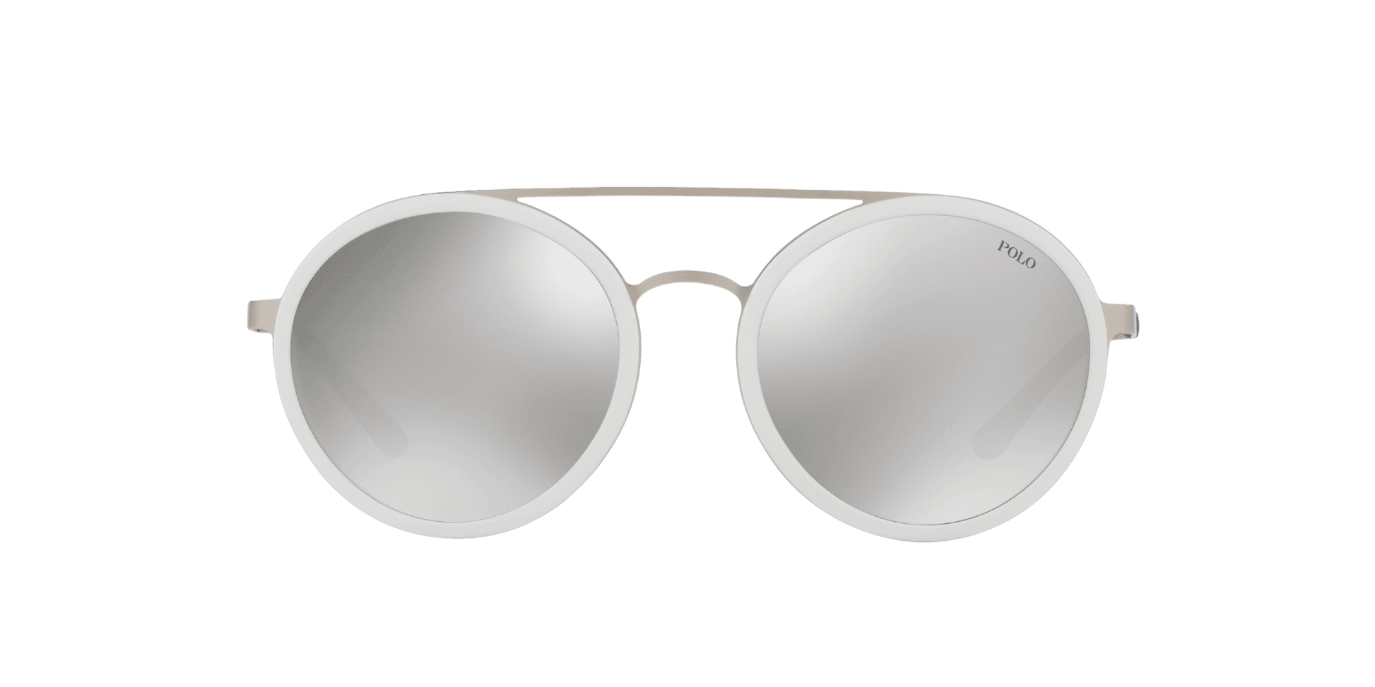 Polo Ralph Lauren PH 3103 9010-6G for Women which is made of metal material. Features of sunglasses are gray color frame with gray Mirrored lens of a Round shape. The logo of Ralph Lauren is displayed on the temple.