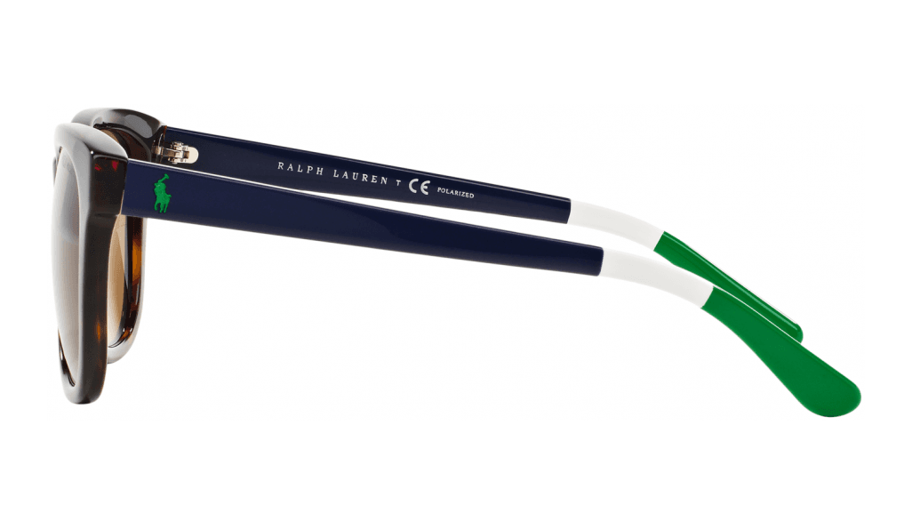 Polo Ralph Lauren PH 4105 5577-83 is a full rim frame for women which is made of Plastic material. Features of sunglasses are blue colour frame with Brown polarised lens of Rectangular shape. The logo of Ralph Lauren is displayed on the temple.