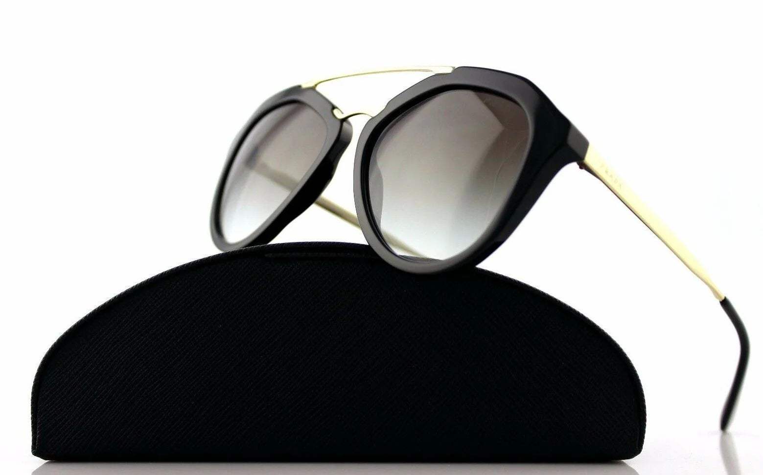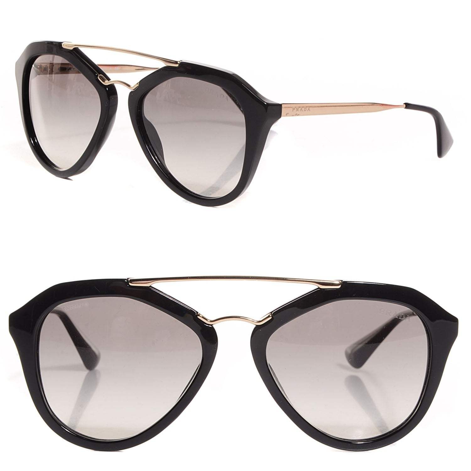 Prada SPR 12Q 1AB-1C0 is a full rim frame for Women which is made of plastic material. Features of sunglasses are Gold Black color frame with Light Brown lense and 54-18-135 mm size.