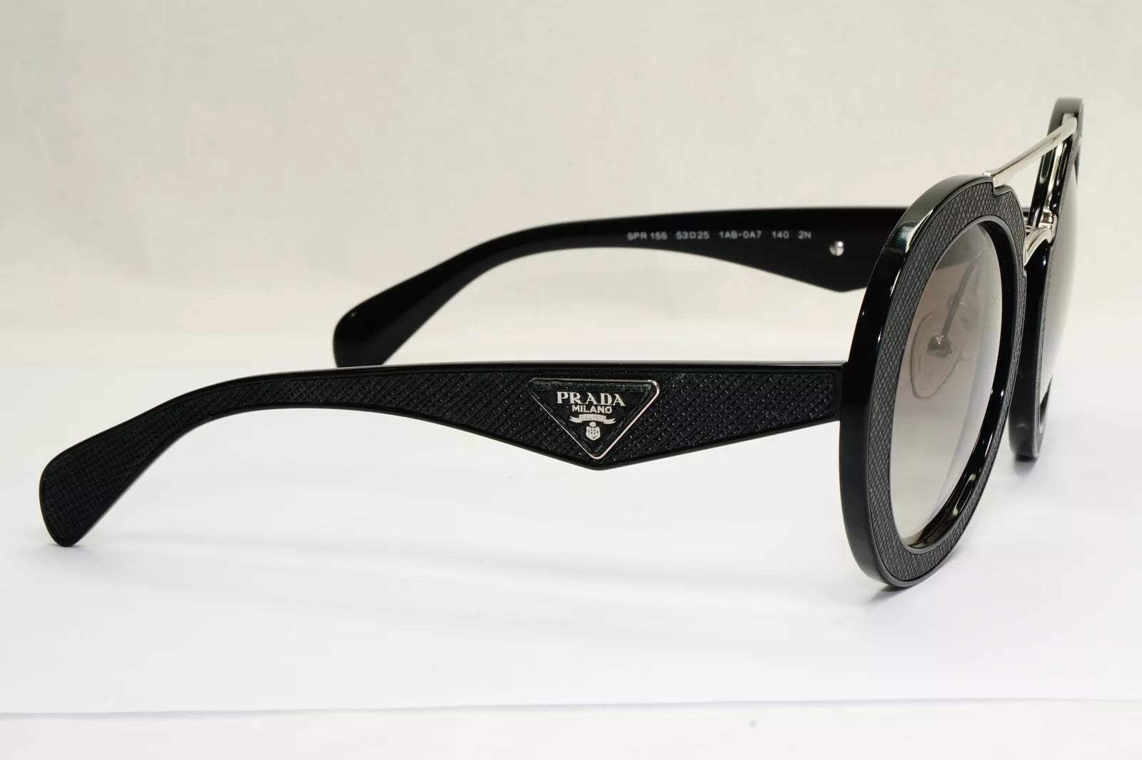 Prada SPR 15S 1AB-0A7 is a full rim frame for Women which is made of plastic material. Features of sunglasses are Black color frame with Grey Gradient lense and 53-25-140 mm size.