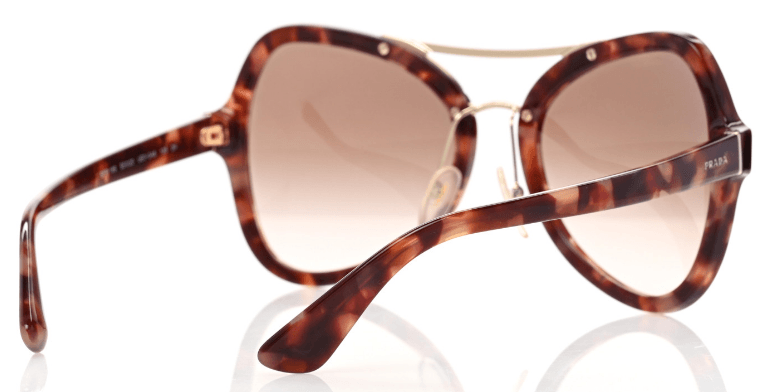 Spr 23q 1ab-0a7 is a full rim frame for women which is made of acetate. This model features a regtangle shaped black colored frame, in grey gradient colored lens. The logo of prada is displayed on the temple.