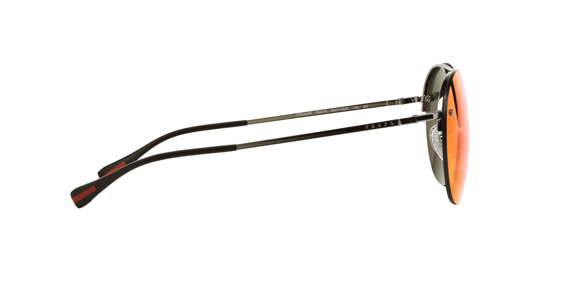 Prada SPS 54R 5AV-5M0 is a full rim frame for unisex which is made of plastic material. Features of sunglasses are Gunmetal frame with Brown Orange lens and 56-18-135 mm size.