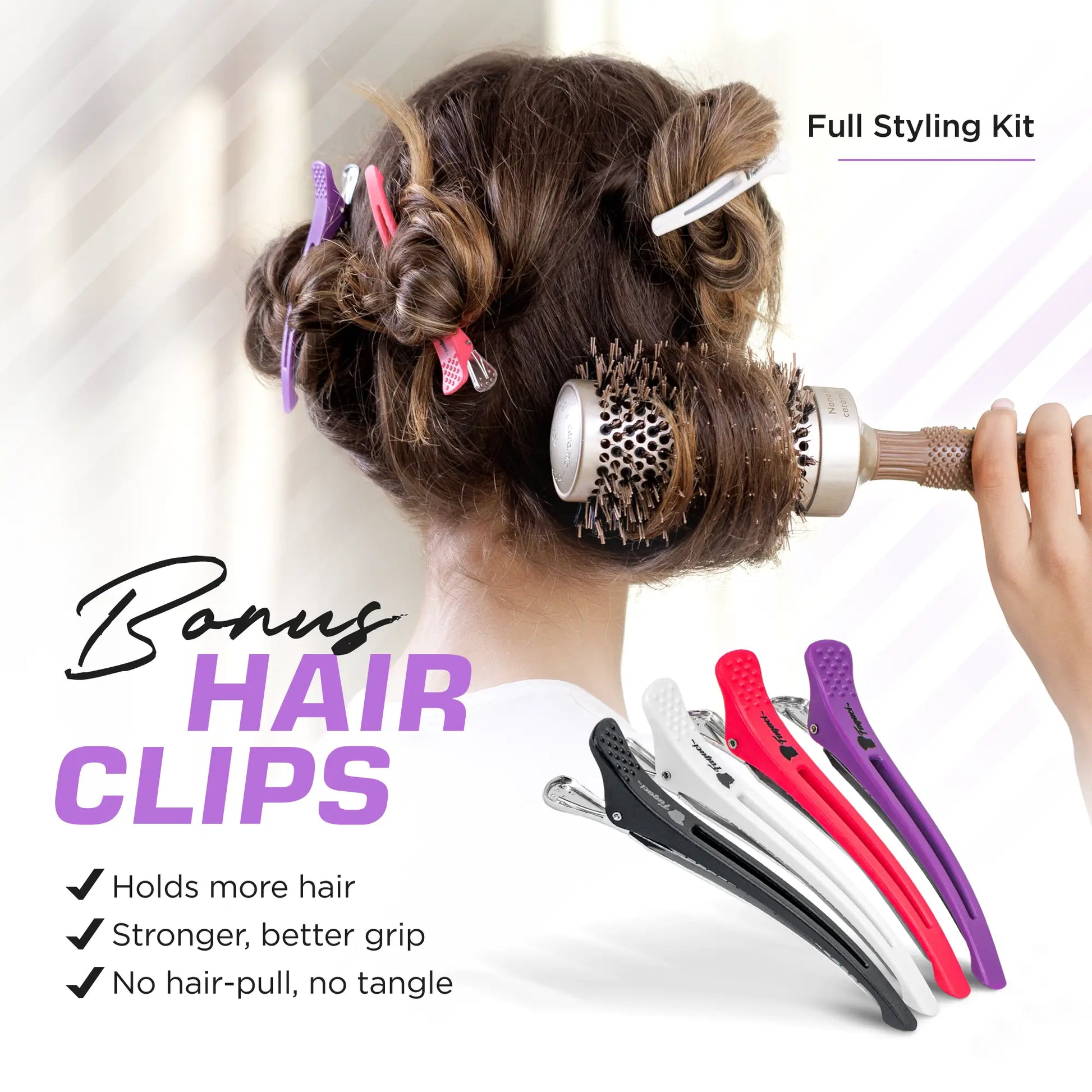 🤩Professional Hair Clips Included- These hair clips are made of the highest quality materials and have a silicone band that ensures a firm grip for all hair types. Hair clips that are very useful for styling as well as blow drying. With the help of this amazing round brush and hair clips, you can now have salon-like blowouts and sleek hairstyles at home.