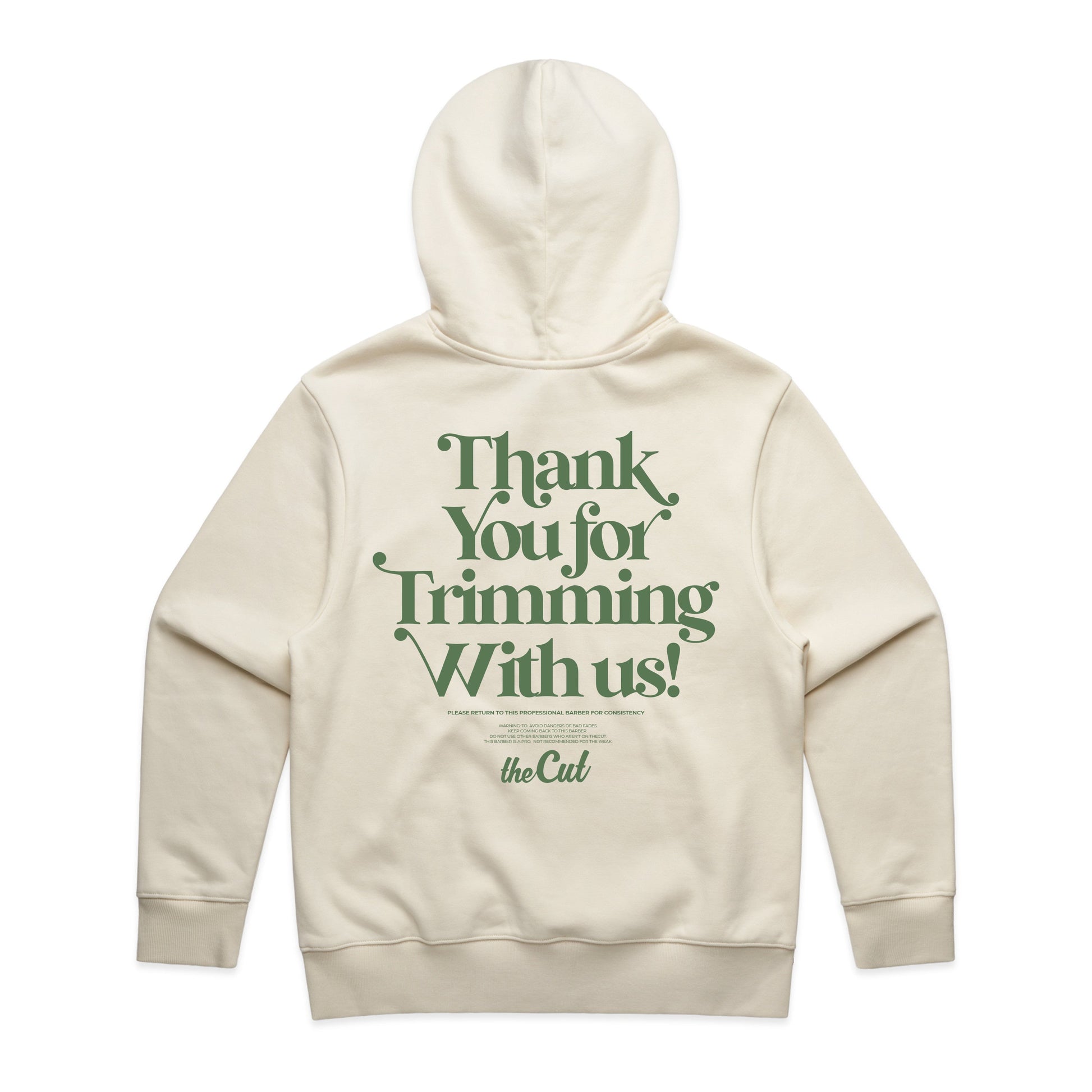 Your clients come to you for a cut, a trim, a line-up and more. We created our own version of "Thank you for shopping with us" and replaced shopping with "trimming" for barbers. Wear this sweatshirt with confidence, stay warm in colder weather and remember to thank your clients for choosing you as their barber.